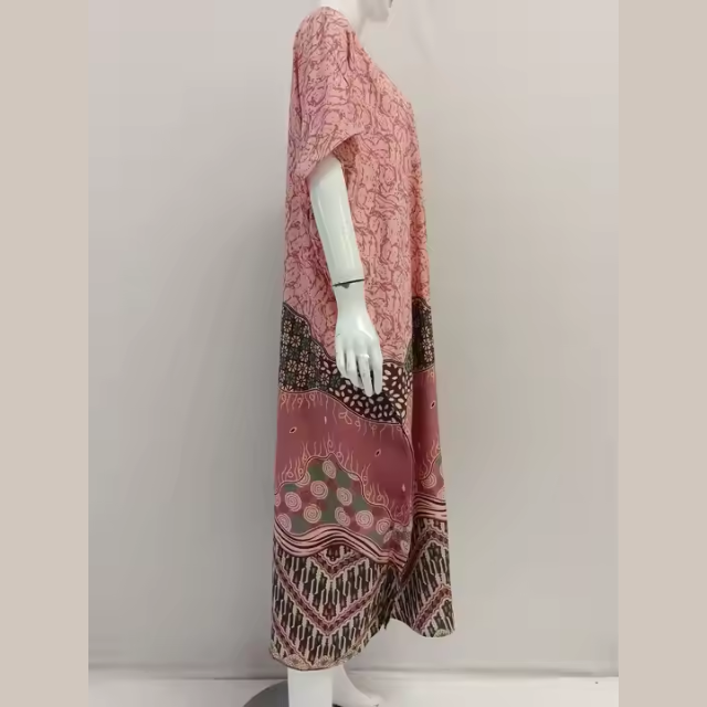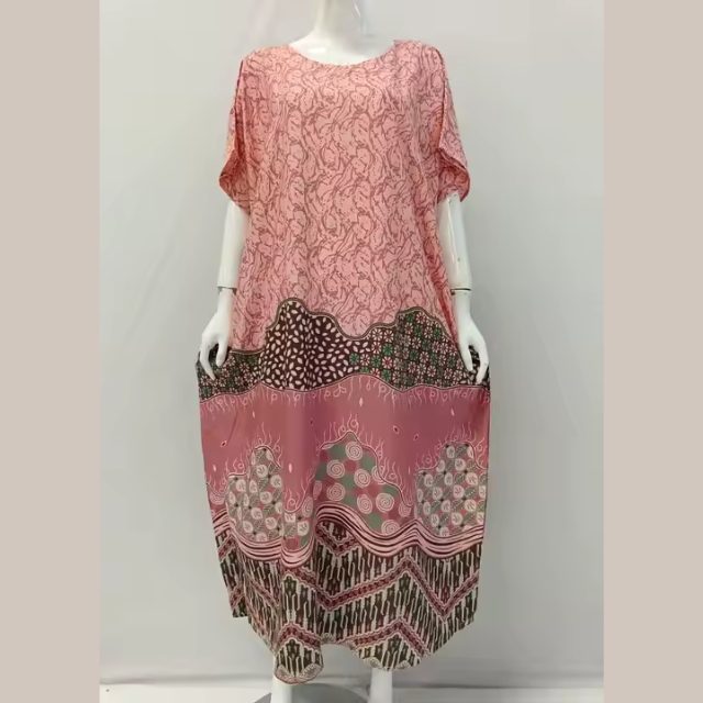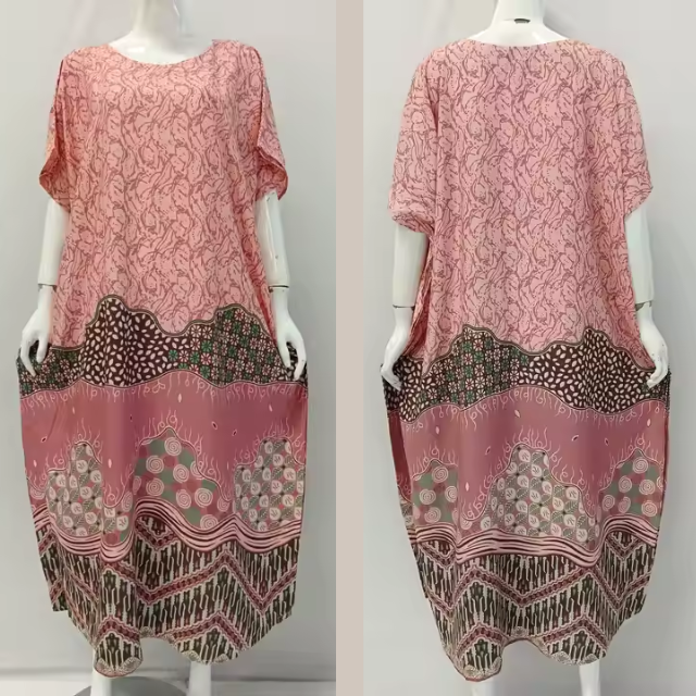 ชุดเดรสคาฟทันฤดูร้อนแบบเรียบง่าย ความยาวระดับเข่า แขนสั้น ทรงโอเวอร์ไซส์ ผลิตจากผ้าเรยอน สวมใส่สบายสำหรับทุกวัน