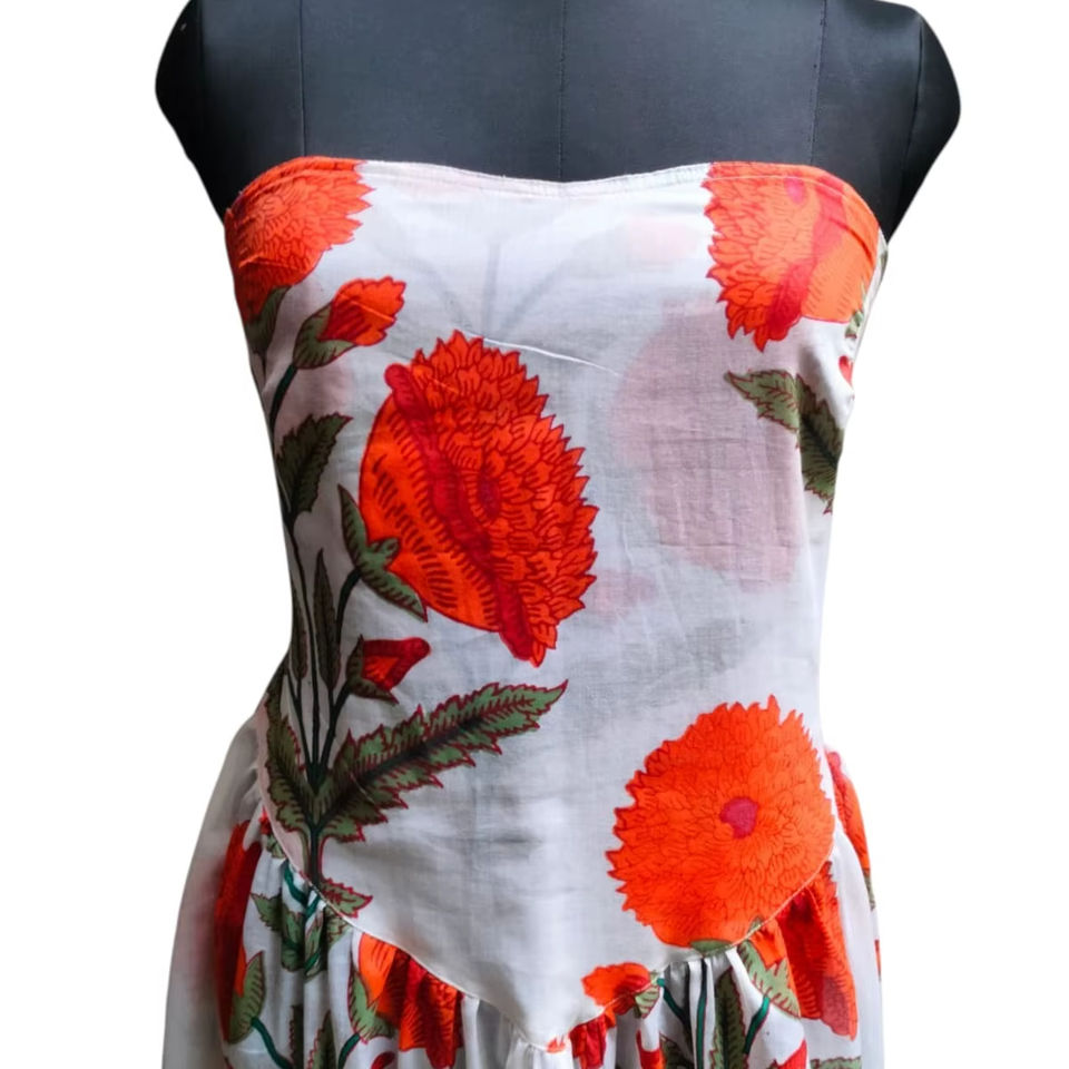 ชุดเดรสฤดูร้อนเนื้อผ้าฝ้าย 100% สวมใส่สบาย ลายดอกไม้สีแดงสดใสและลายพิมพ์สีขาว น้ำหนักปานกลาง ซักง่าย