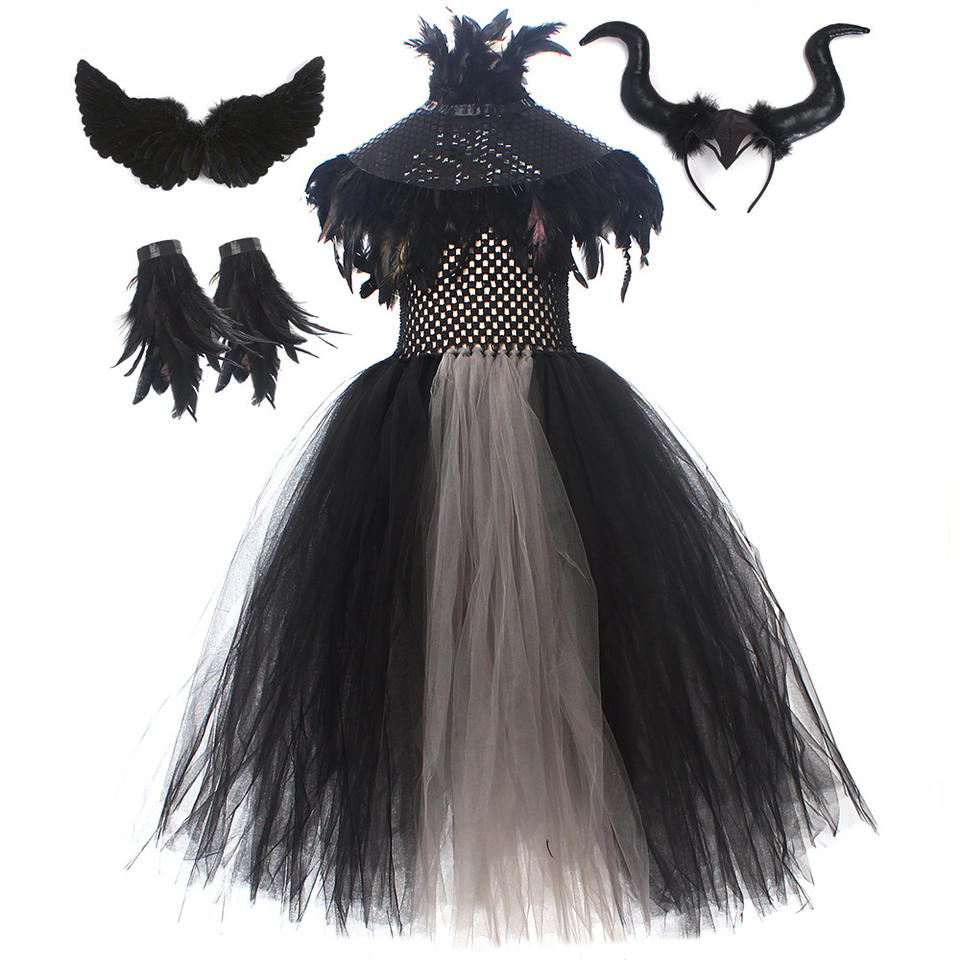 Dresses Kids Ball Gown Robe Children Cosplay Clothes Girls Halloween Evil Dark Queen Girls Costume Deluxe Solid Color Swan