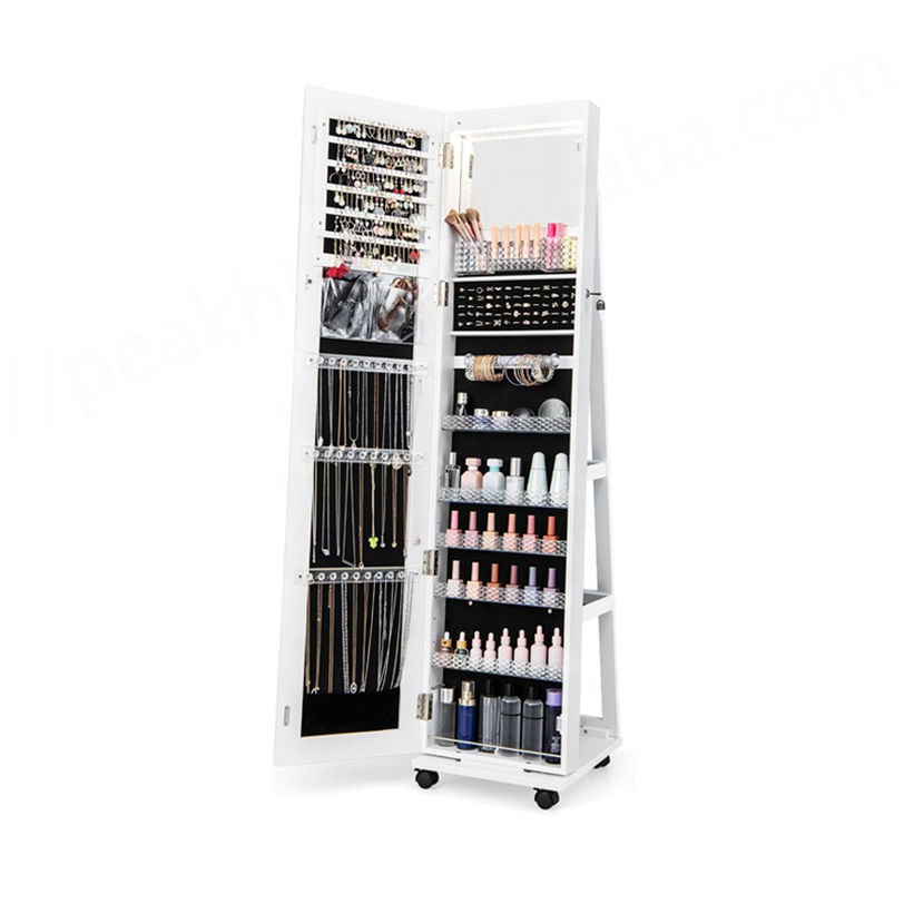 360เก็บเครื่องประดับทำจากกระจกแบบหมุนพร้อมล้อสำหรับบ้านเฟอร์นิเจอร์แต่งตัว