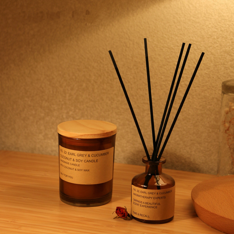 เทียนหอมอโรมาเธอราพีดอกไม้แห้งขี้ผึ้งถั่วเหลืองน้ำหอมที่ไม่เป็นเปลวไฟของที่ระลึกชุดขวดน้ำหอมขนาด50มล.