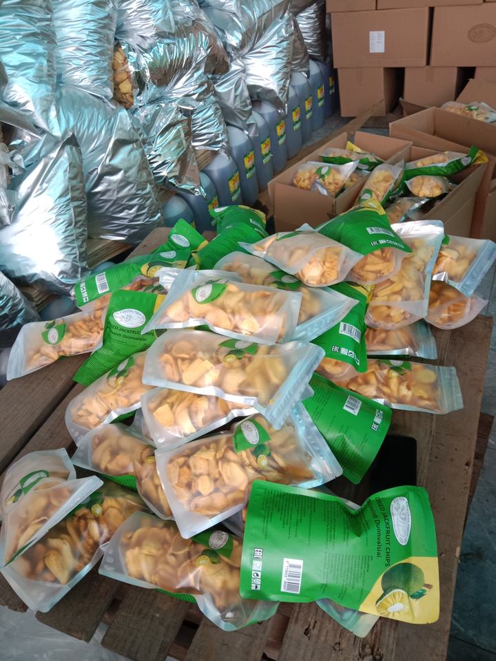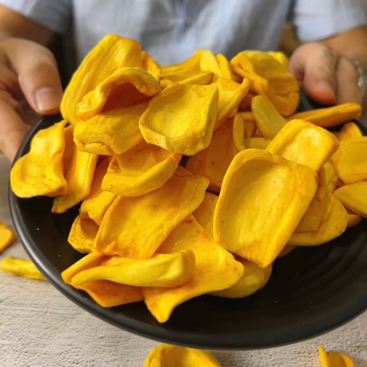 ขนุนแห้งขนุนผลไม้เมืองร้อนกรุบกรอบเก็บเกี่ยวผลไม้แปลกใหม่ที่ฟาร์มของโรงงานเวียดนาม