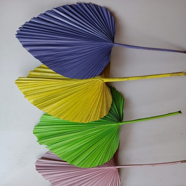 ใบปาล์มแห้งย้อมสีสันสดใส พัดใบปาล์มแห้งธรรมชาติ สำหรับตกแต่งซุ้มงานแต่งงาน ภายในและภายนอกอาคาร