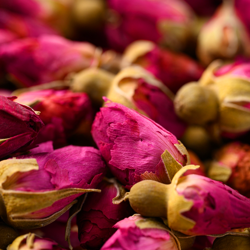 ดอกตูมสมุนไพรและกลีบดอกสีแดงแห้ง
