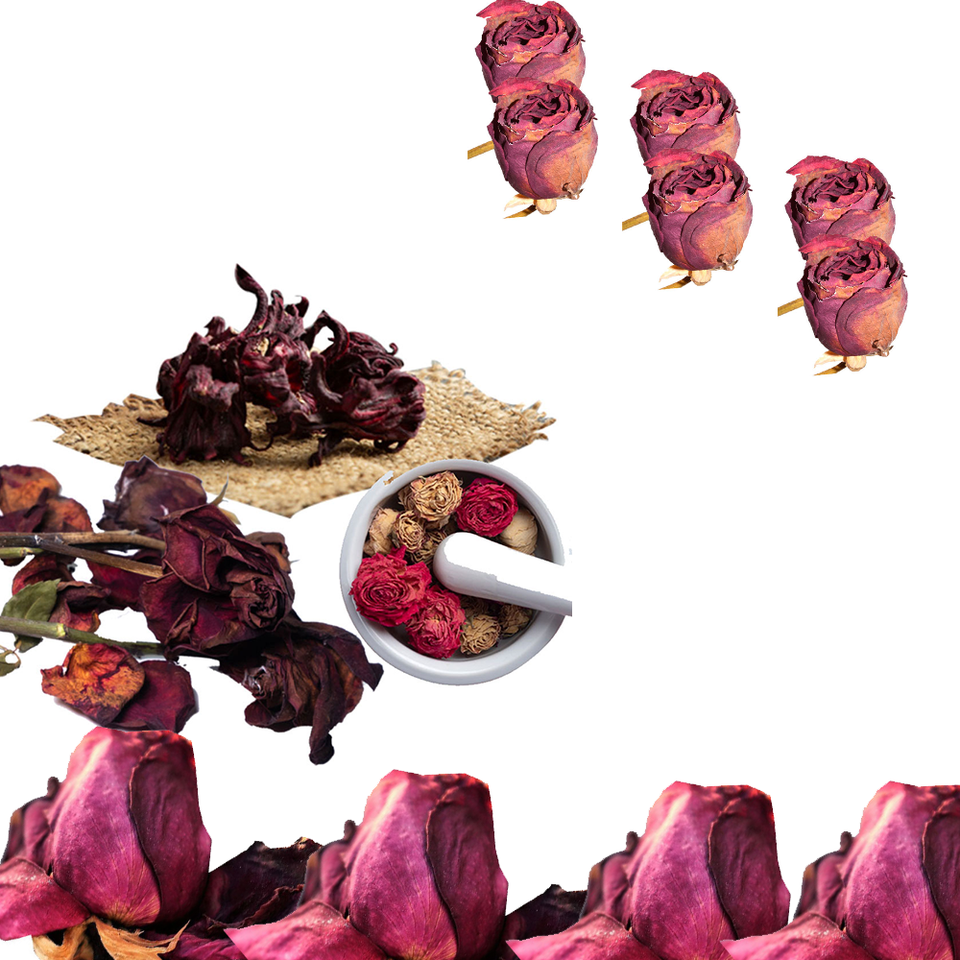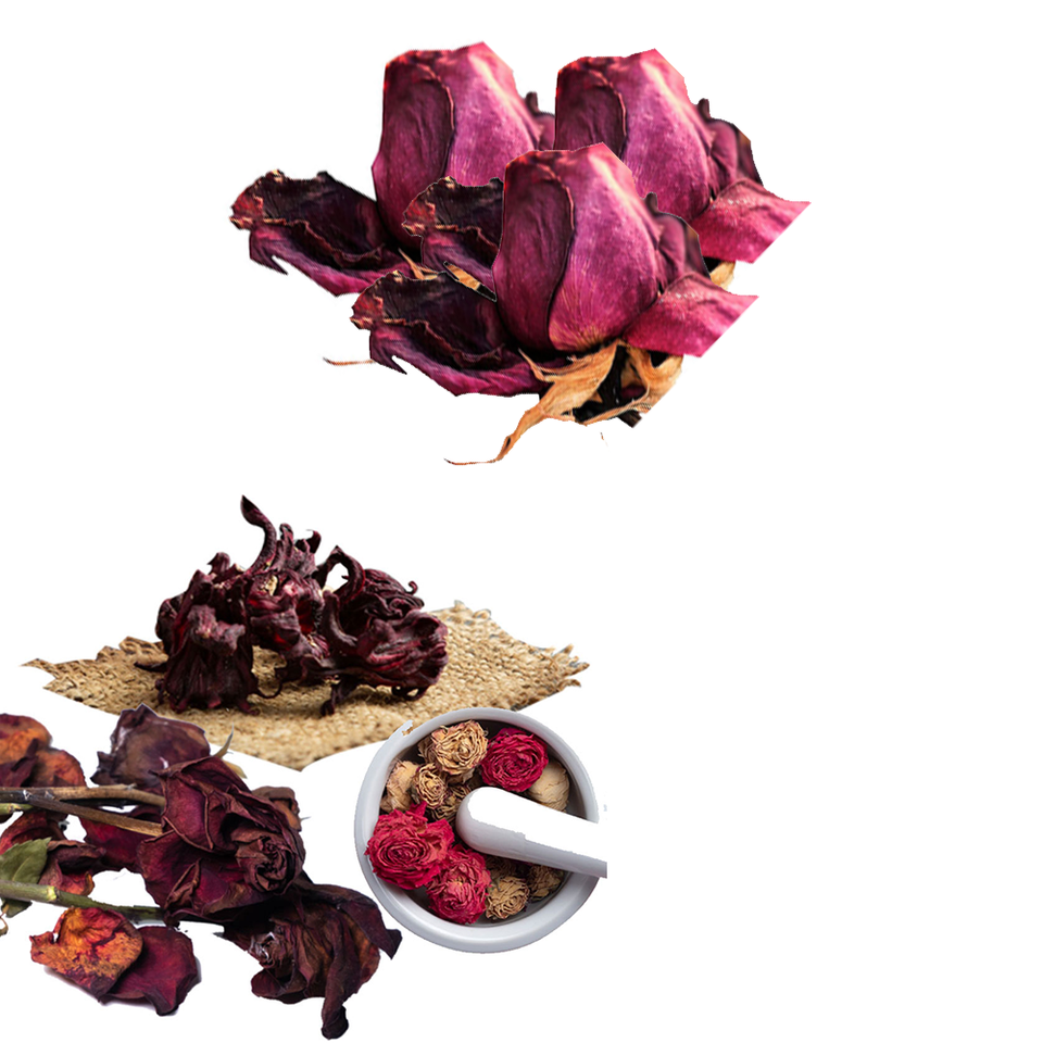 ดอกตูมสมุนไพรและกลีบดอกสีแดงแห้งส่วนผสม