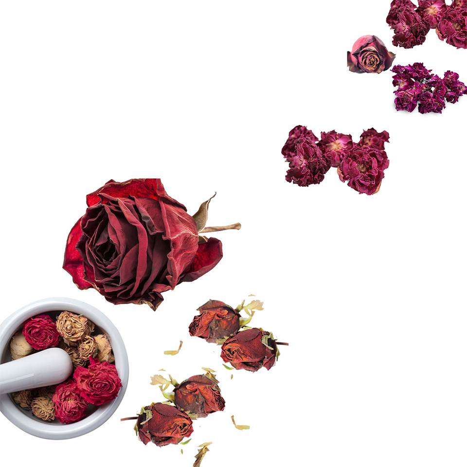 ดอกตูมสมุนไพรและกลีบดอกสีแดงแห้งส่วนผสม