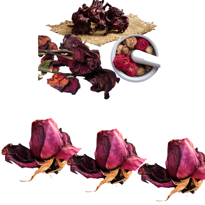 ดอกตูมสมุนไพรและกลีบดอกสีแดงแห้งส่วนผสม