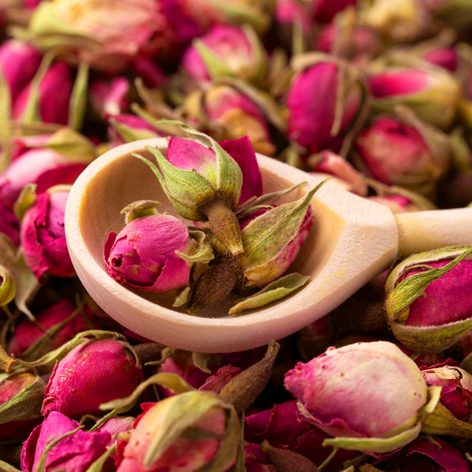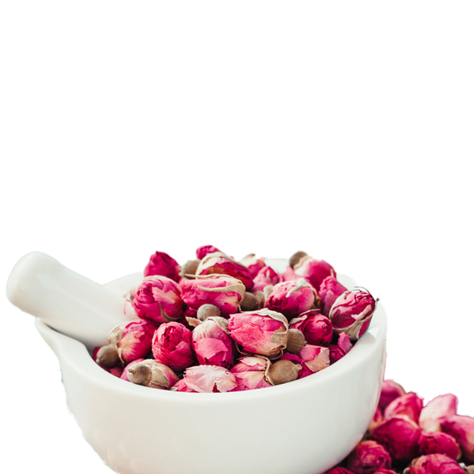 ดอกตูมสมุนไพรและกลีบดอกสีแดงแห้งส่วนผสม