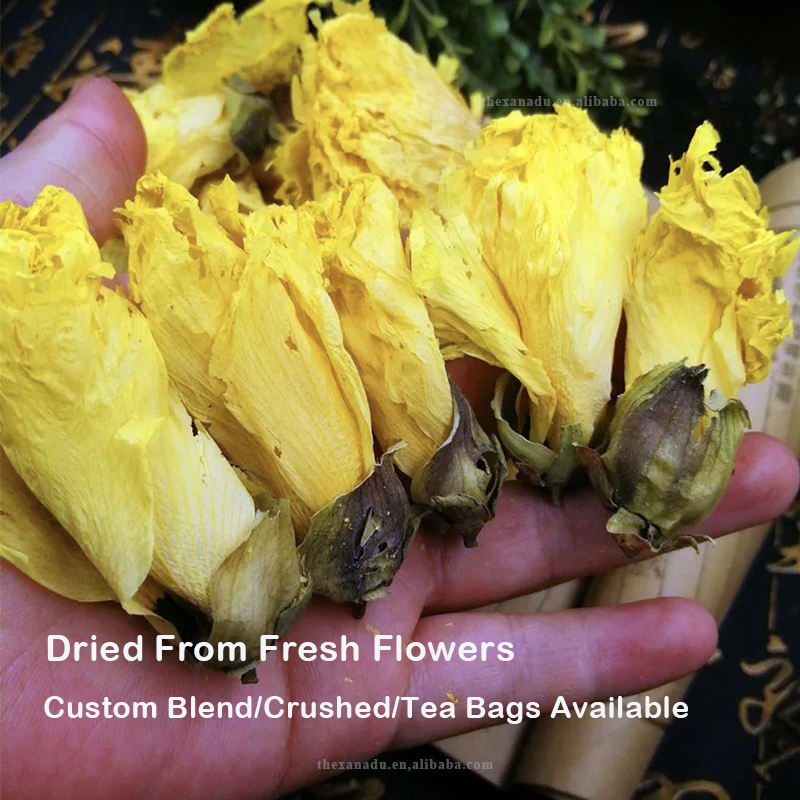 ดอกไม้สีเหลืองมัสค์มาลโลว์ทั้งถุงจาก aibika abelmoschus Manihot Shu kui okra