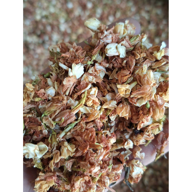 ดอกจัสมินแห้งคัดกรองและทำความสะอาดสำหรับบรรจุจำนวนมากใช้กันอย่างแพร่หลายในการสร้างเครื่องดื่มหรือส่วนผสมชา