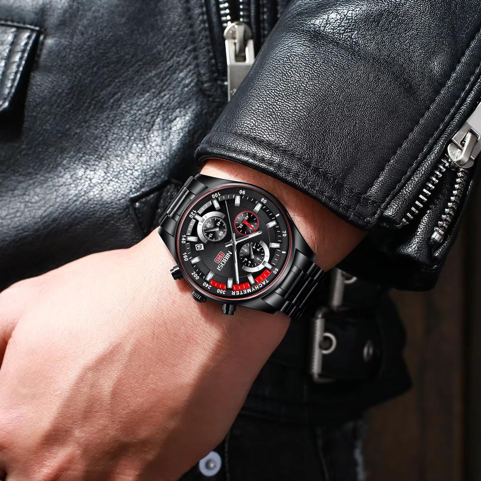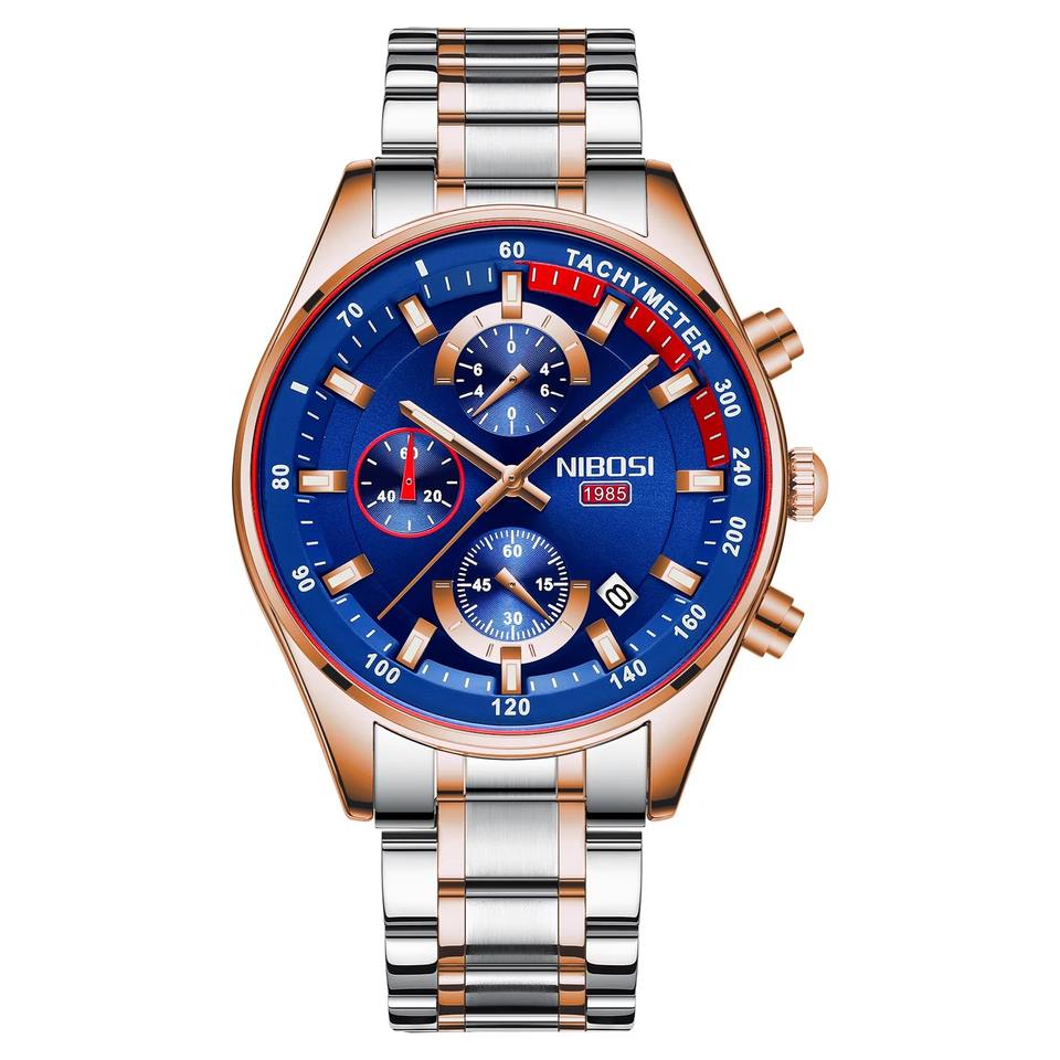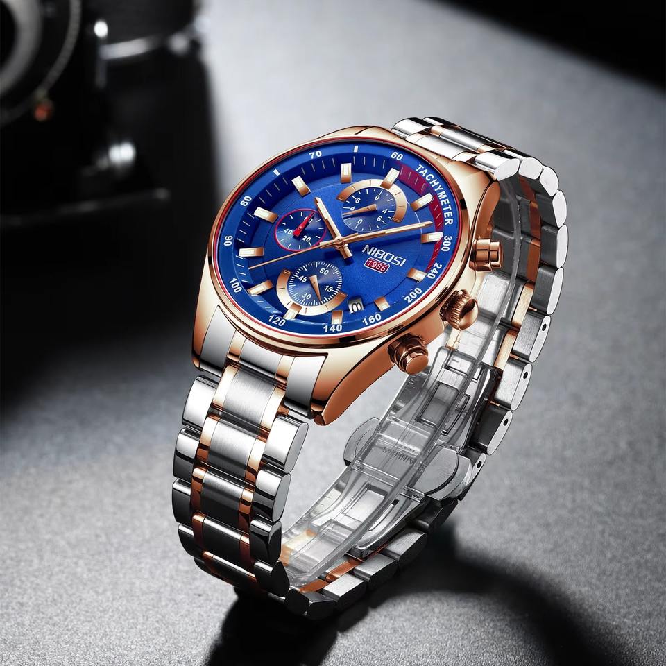 นาฬิกาข้อมือควอทซ์สำหรับผู้ชายหรูหราสไตล์ธุรกิจ2375เรือนทองสายสแตนเลสหนา5มม. โครโนกราฟกันน้ำ