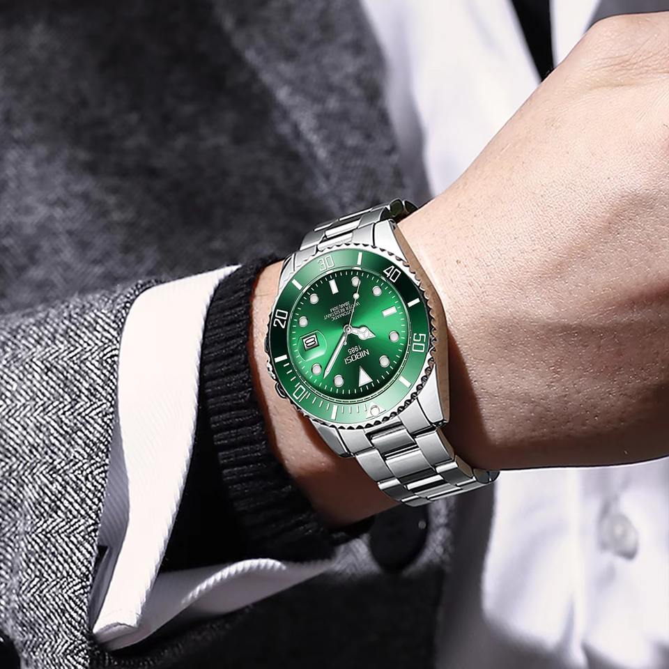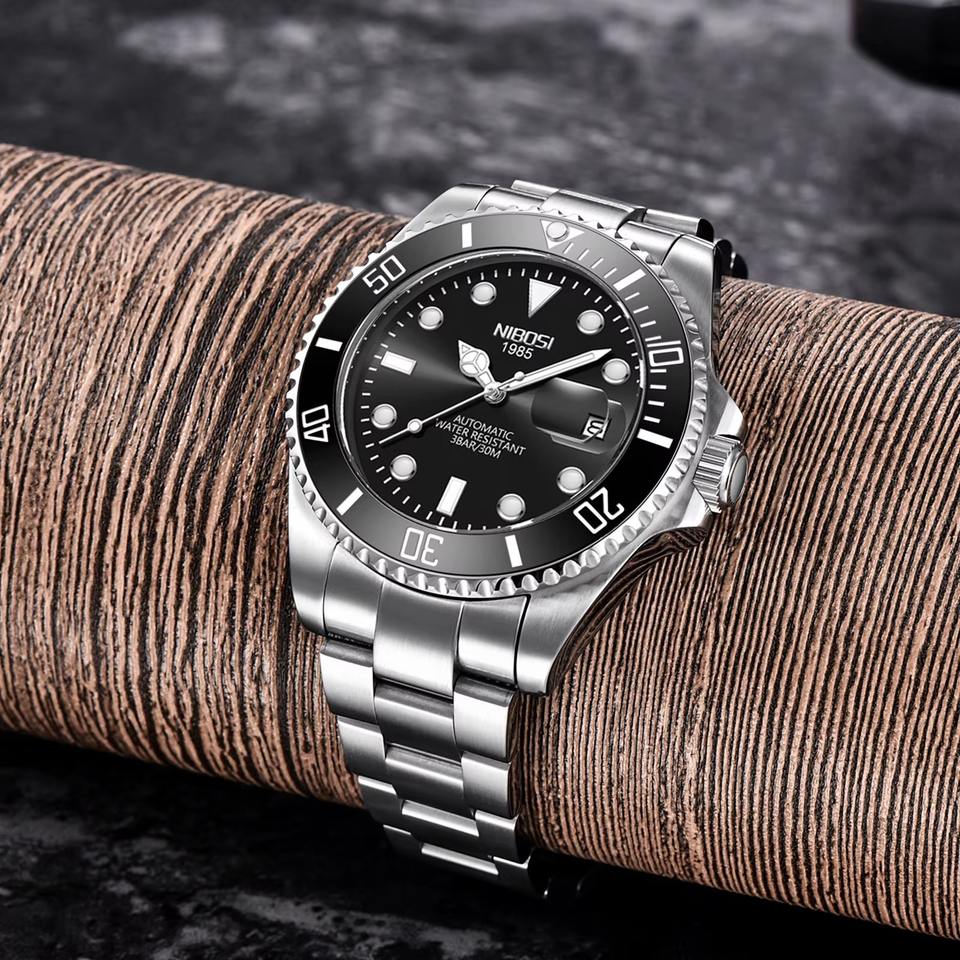 นาฬิกาข้อมือกลไกอัตโนมัติสำหรับผู้ชายสายสแตนเลสนาฬิกาปฏิทิน