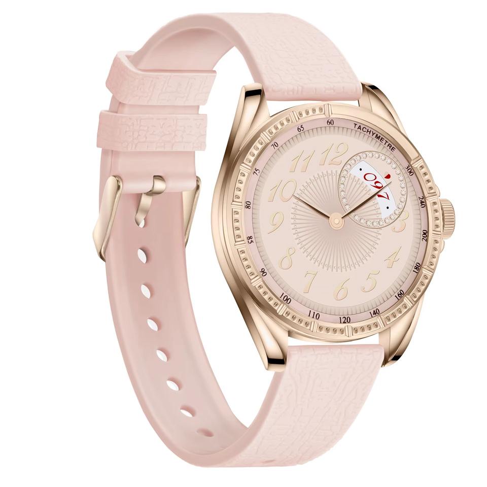 นาฬิกาอัจฉริยะสำหรับผู้หญิงกันน้ำสำหรับฟิตเนสจอ AMOLED IP68โทร BT หน้าจอ AMOLED