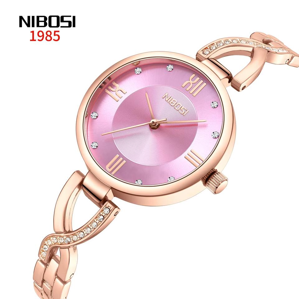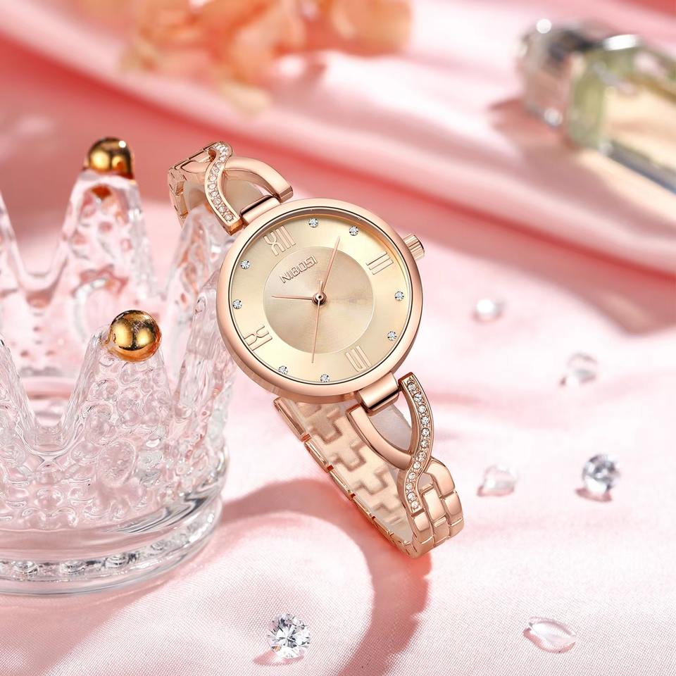 นาฬิกาข้อมือควอตซ์สำหรับผู้หญิงหรูหราแบบดริ๊บชิปโลหะสแตนเลสหน้าปัดแก้วปรับแต่งโลโก้ได้ทันสมัย