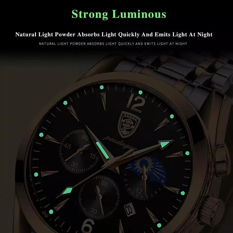 นาฬิกาควอตซ์สำหรับผู้ชายหรูหรากันน้ำนาฬิกาข้อมือธุรกิจเรืองแสงพร้อมสายหนังดีไซน์แบบกล่อง