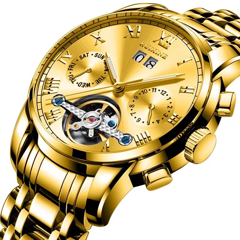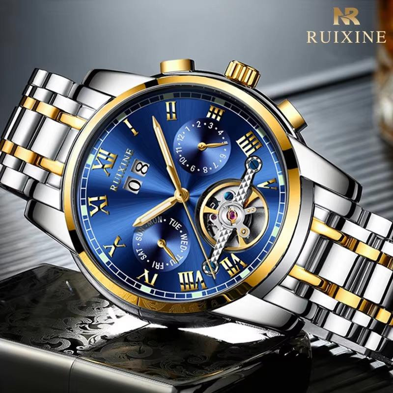 นาฬิกาข้อมือสแตนเลสสตีลหรูหราระบบกลไกจักรกลกันน้ำสำหรับผู้ชายนาฬิกาออกแบบโลโก้ได้ตามต้องการ