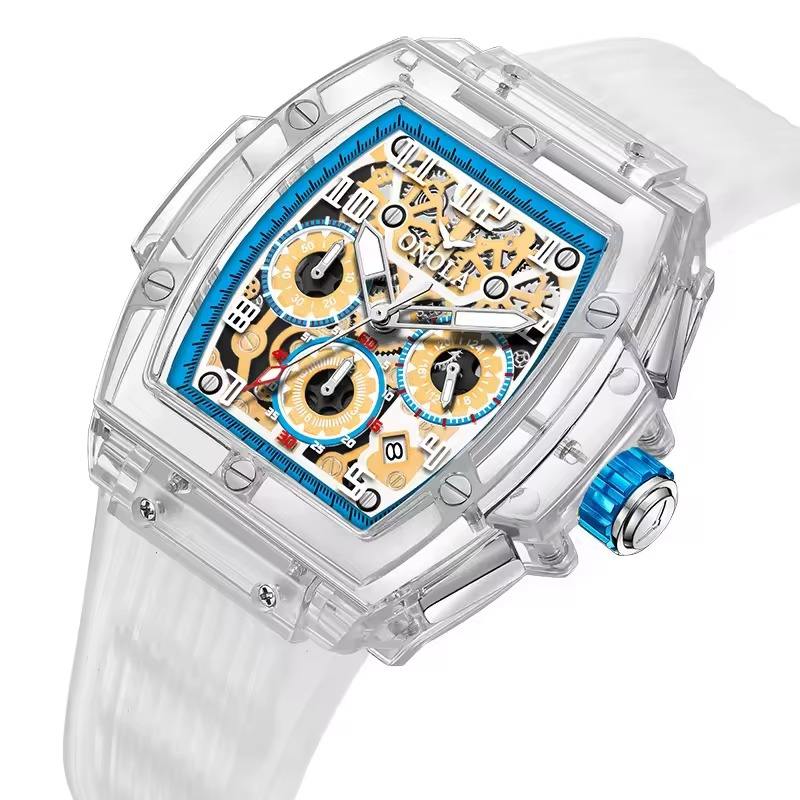 นาฬิกาข้อมือควอตซ์สำหรับผู้ชายทรงสี่เหลี่ยมกันน้ำหรูหรากันน้ำแบบสั่งทำสำหรับธุรกิจกีฬาแฟชั่นพร้อมสายรัด