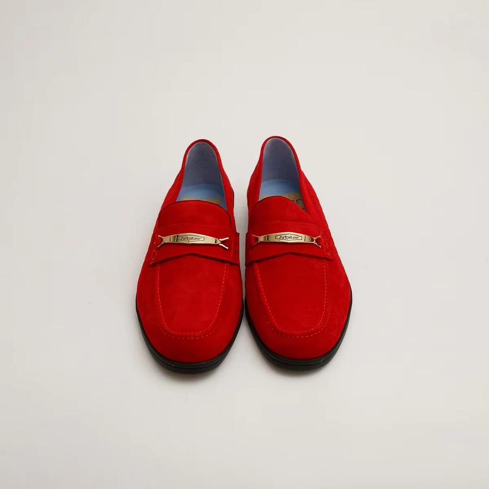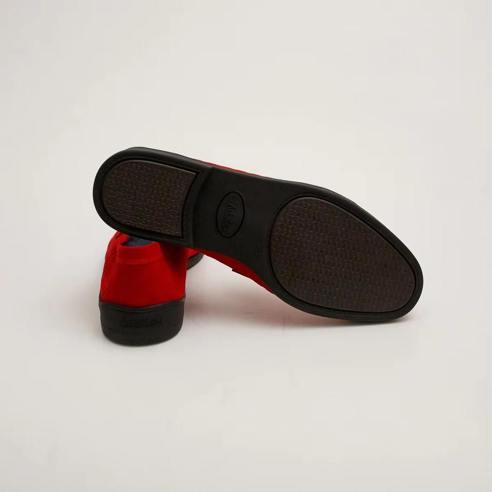 รองเท้าโลฟเฟอร์หนังกลับสีแดงอิตาลีพื้นยางรองเท้าสไตล์เดินลำลอง