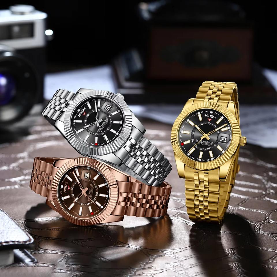 นาฬิกาข้อมือผู้ชายแบบดรอปชิปปิ้ง กันน้ำ เรืองแสง นาฬิกาควอตซ์ผู้ชาย สายสแตนเลส นาฬิกาผู้ชาย
