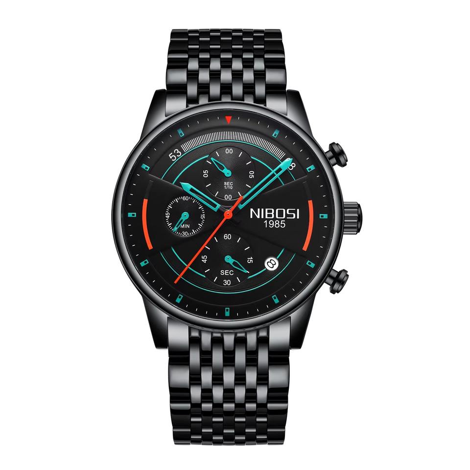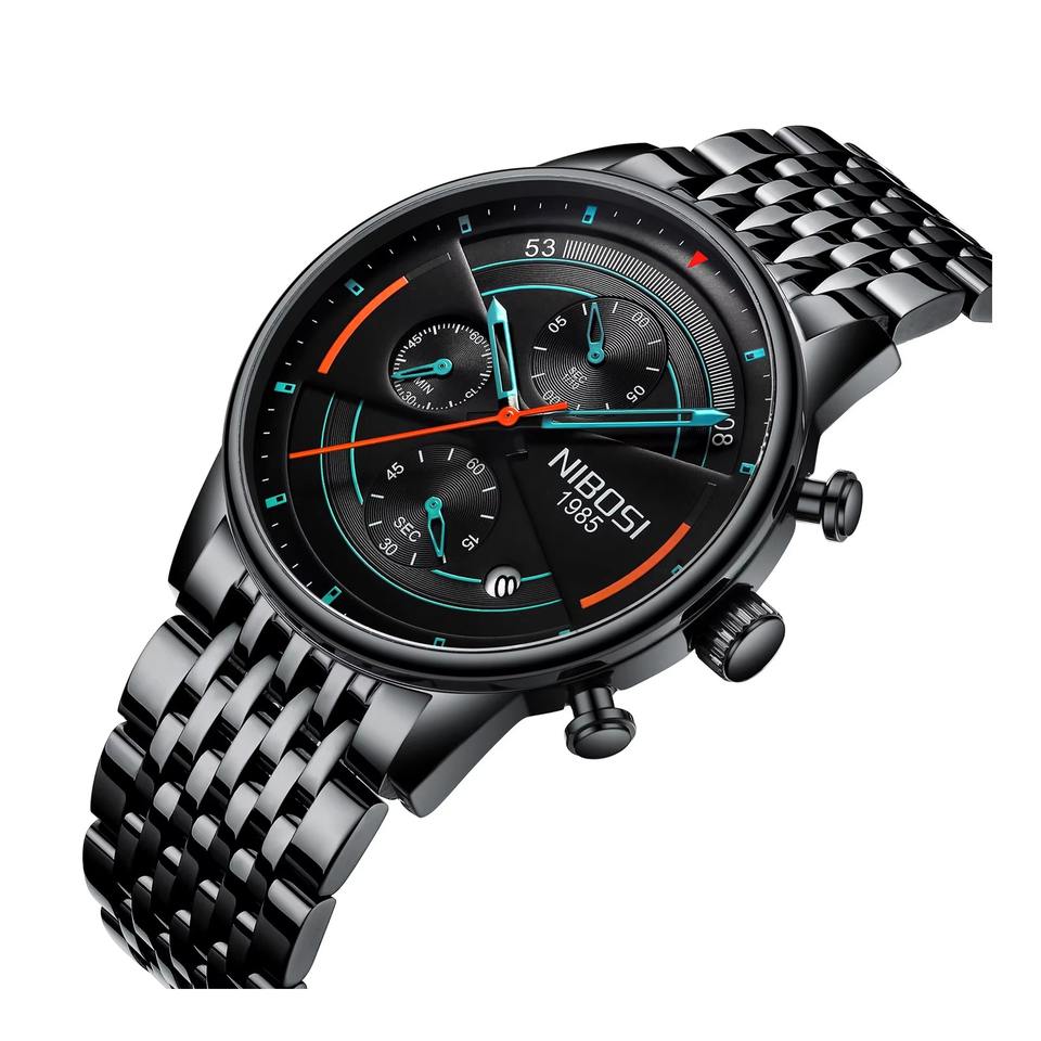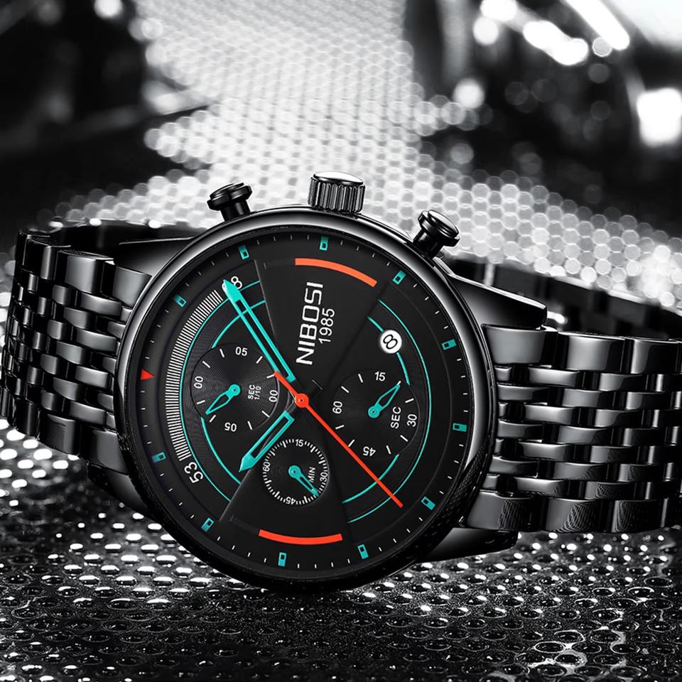 นาฬิกาข้อมือควอตซ์แนวสปอร์ตสำหรับผู้ชาย, นาฬิกาลำลองดีไซน์สแตนเลสสตีลหน้าจอแสดงปฏิทินกันน้ำหน้าปัดกระจกแบบเรียบง่าย