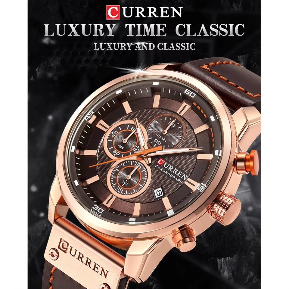 นาฬิกาสำหรับนักธุรกิจชายแบบหรูมีปฏิทินวันที่นาฬิกาควอตซ์แบบมีสายหนัง