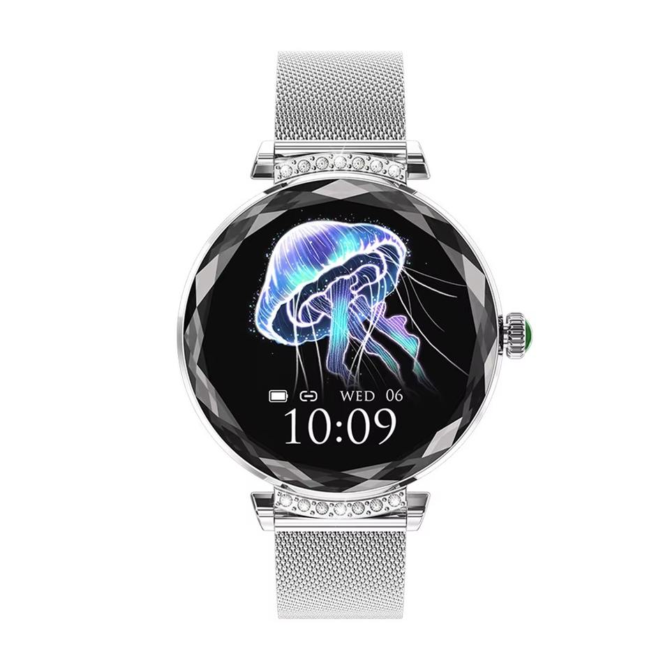 นาฬิกาอัจฉริยะหน้าจอ AMOLED ของผู้หญิง IP68กันน้ำโทร BT การตรวจวัดการตรวจวัดอัตราการเต้นของหัวใจซิลิกาเจลทันสมัย