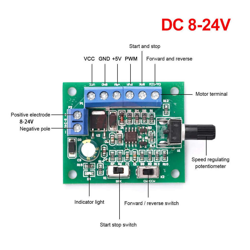 บอร์ดควบคุมความเร็ว PWM มอเตอร์ไร้แปรงถ่าน DC8-24V ตัวควบคุมความเร็วมอเตอร์ DC