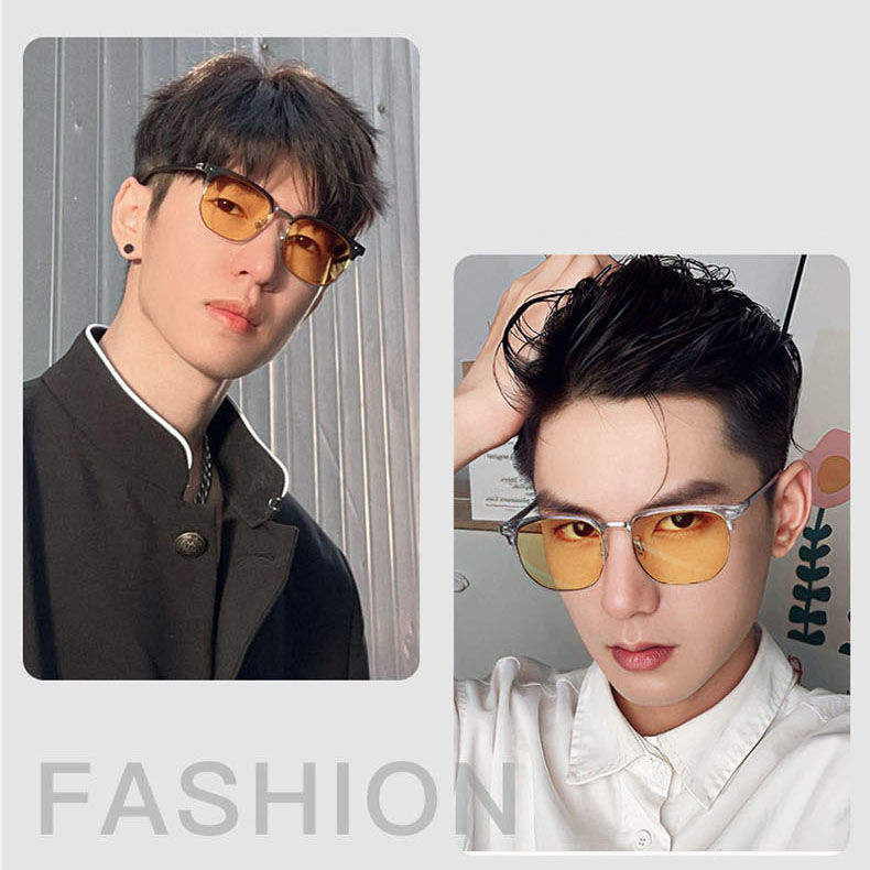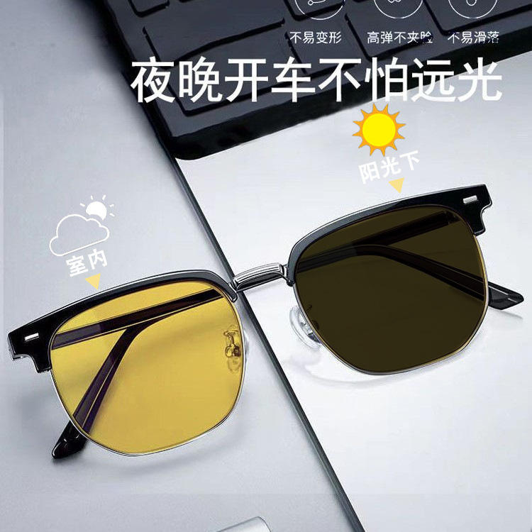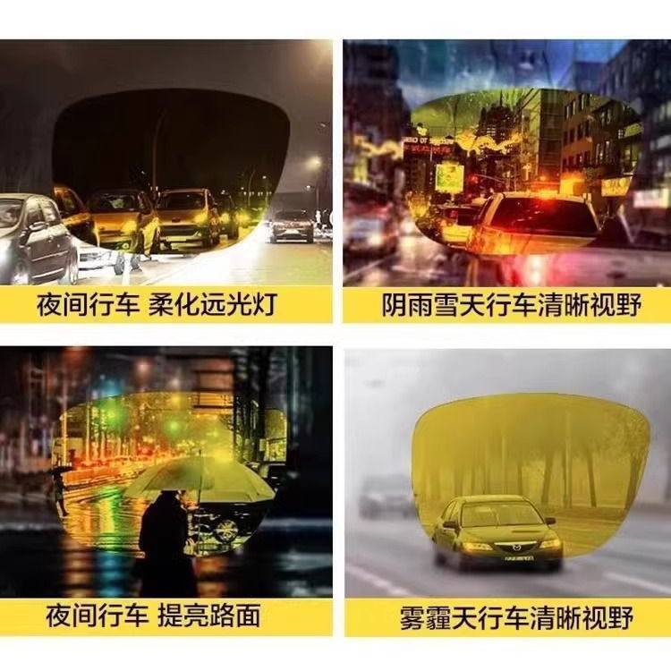 แว่นตาสำหรับขับรถกลางคืน เลนส์สีเหลือง UV380 กรอบพลาสติกและโลหะสีดำ สำหรับใช้กลางวันและกลางคืน