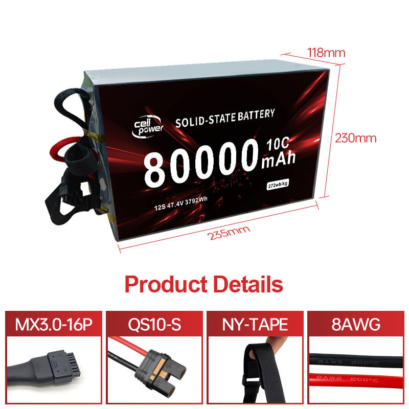 โดรนแบตเตอรี่68000มิลลิแอมป์ชั่วโมง74000มิลลิแอมป์ต่อชั่วโมง80000มิลลิแอมป์ต่อชั่วโมงโซลูชันแบตเตอรี่ที่กำหนดเองสำหรับโดรนแอร์คราฟต์