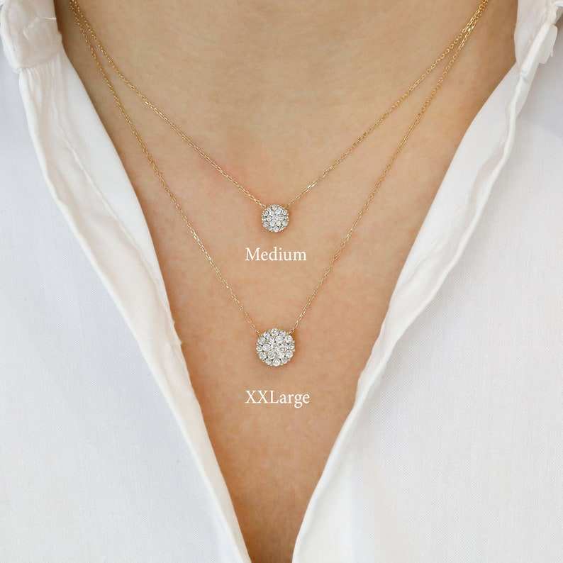 จัดส่งเครื่องประดับที่ดี14K สร้อยคอเพชรเม็ดเดี่ยวกลมสีทองธรรมชาติพร้อมเชือกผูกที่สามารถปรับได้