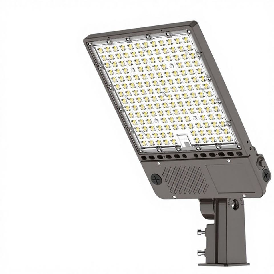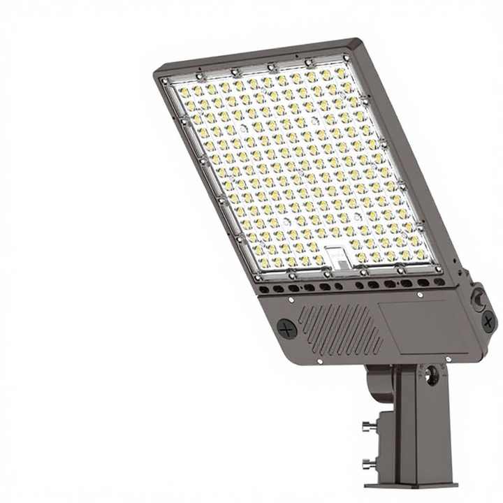 ไฟถนน LED สำหรับลานจอดรถและทางหลวง แบบกันน้ำ IP65 กำลังไฟ 100W-450W ความสว่างสูง 5K ปรับมุมลำแสงได้ ตัวเรือนอะลูมิเนียม ระบบดรอปชิปปิ้ง