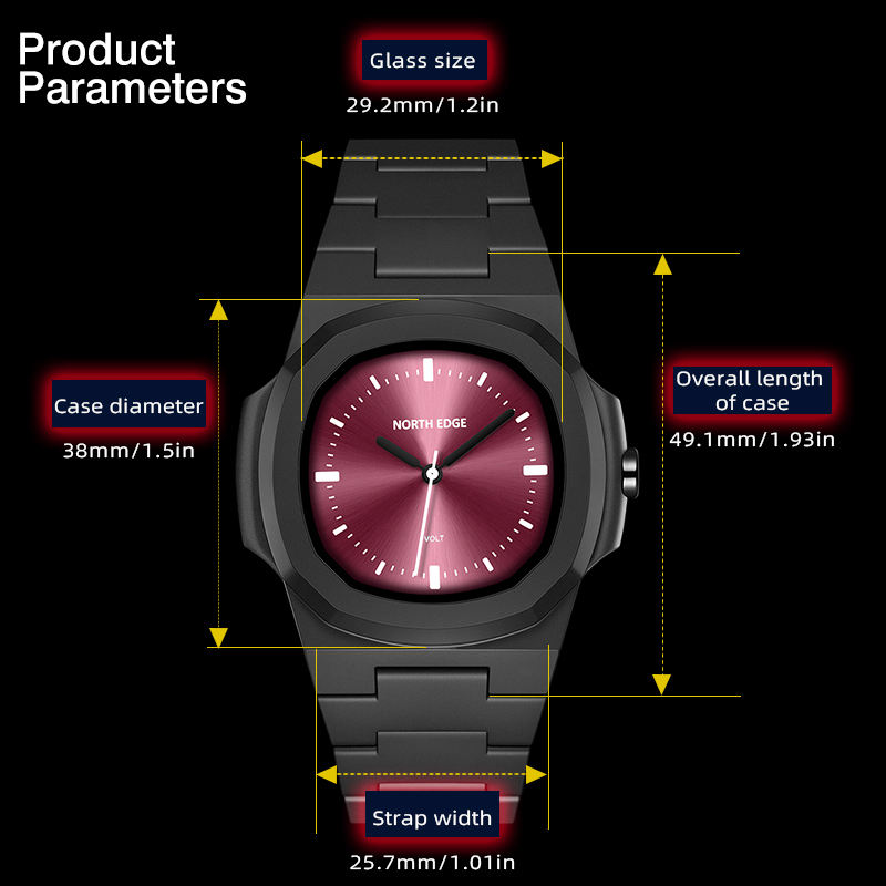นาฬิกาข้อมือดิจิตอล NORTH EDGE VOLT รุ่น Unisex แฟชั่นเรียบง่าย พร้อมไฟ LED แสดงผล ตั้งปลุกได้ กันน้ำ 5BAR เหมาะสำหรับเล่นกีฬาและว่ายน้ำ นาฬิกาคู่รักทรงเหลี่ยม