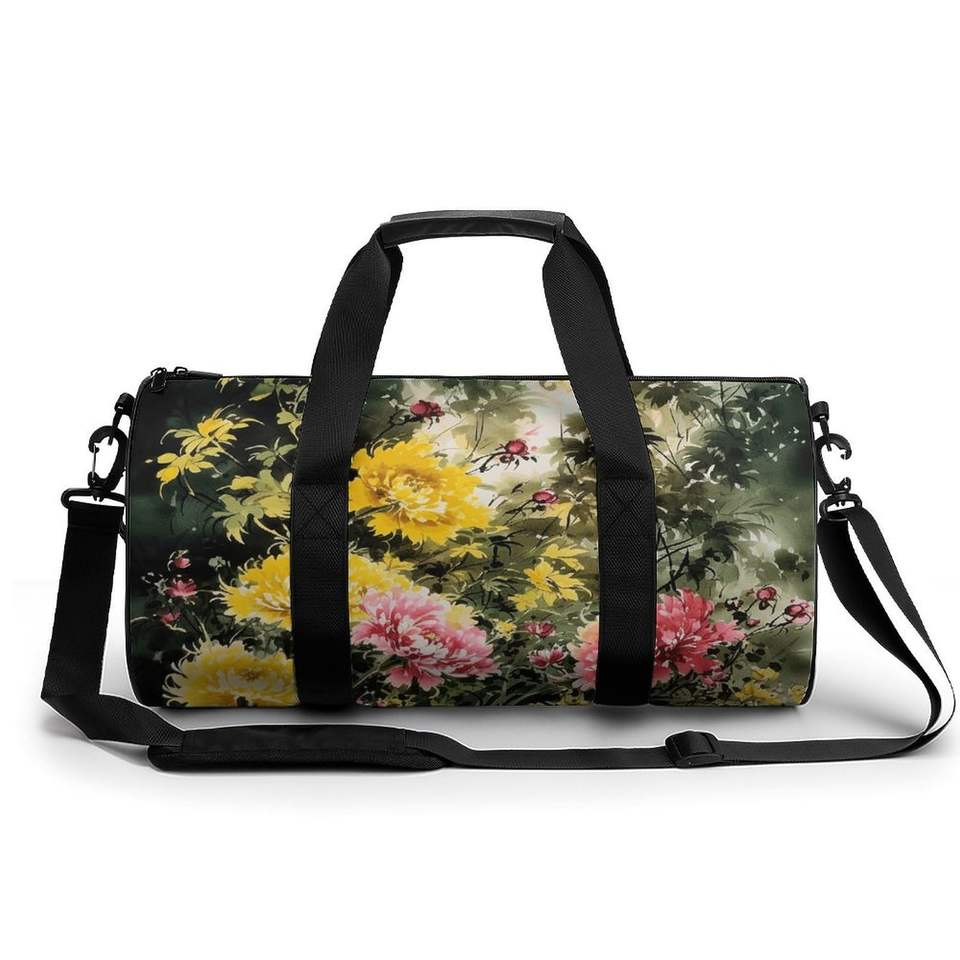 กระเป๋าเดินทางแบบลำลองพิมพ์ลายดอกไม้สวยใช้ได้ทั้งชายและหญิงกระเป๋ายิมน้ำหนักเบามีซิป