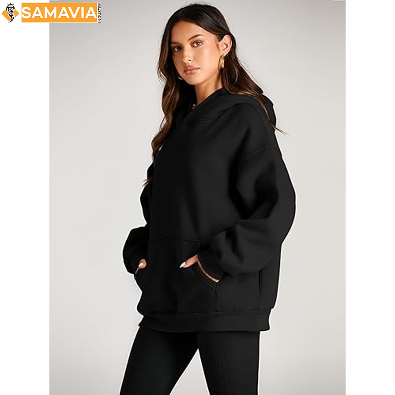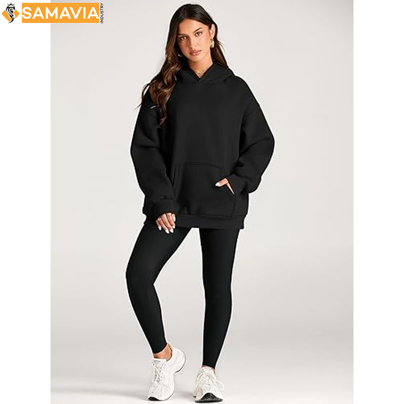 เสื้อวอร์มกางเกงวิ่งพร้อมสเวตเตอร์มีฮู้ดทรงโอเวอร์ไซส์เปิดไหล่2ชิ้น