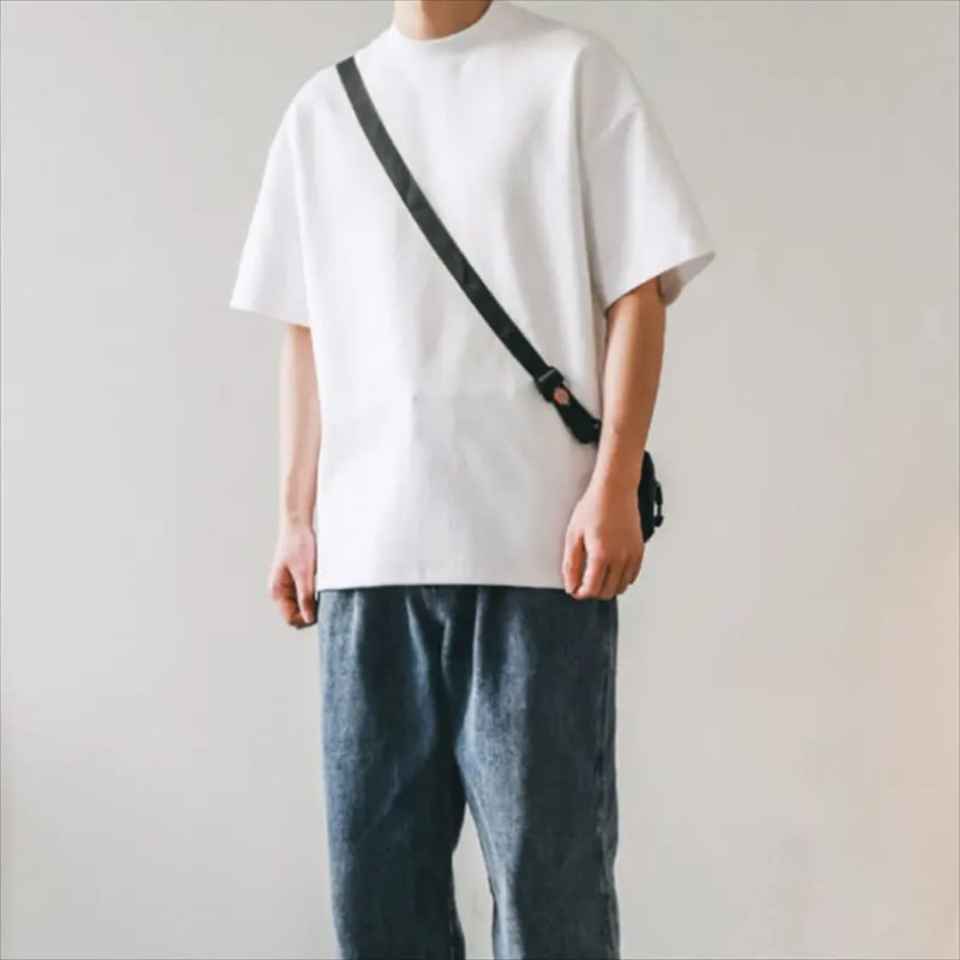 เสื้อคอตตอนผู้ชายเปิดไหล่ปล่อย2025สีดำเสื้อยืดผ้าฝ้ายออร์แกนิกสีล้วนแบบถักโอเวอร์ไซส์