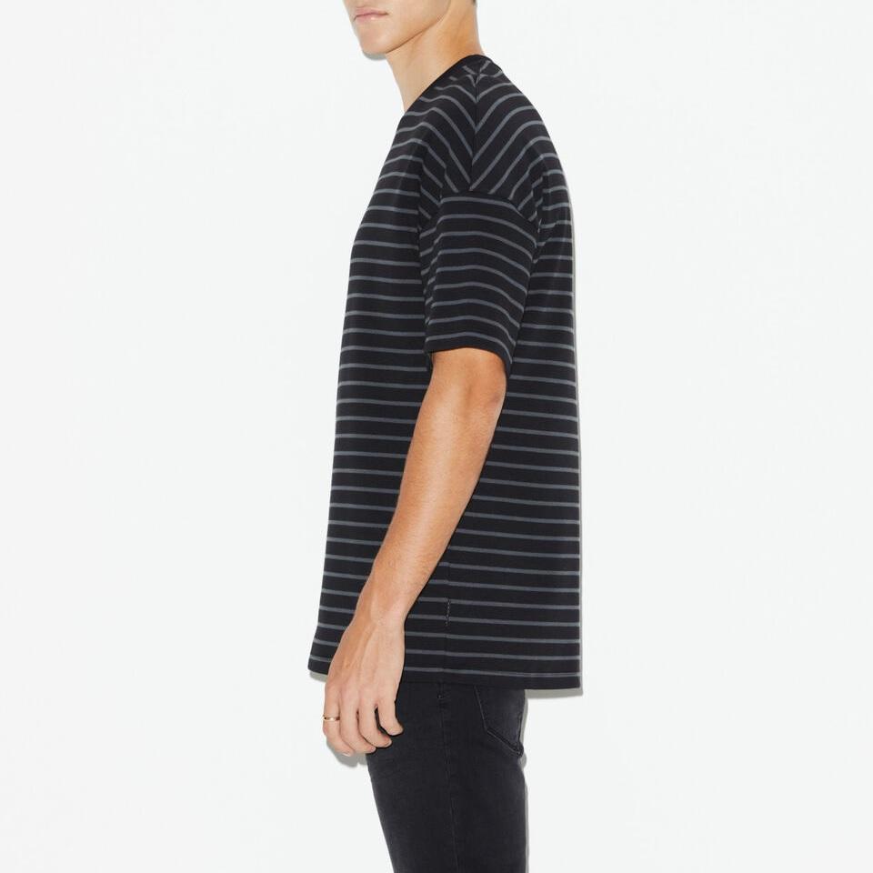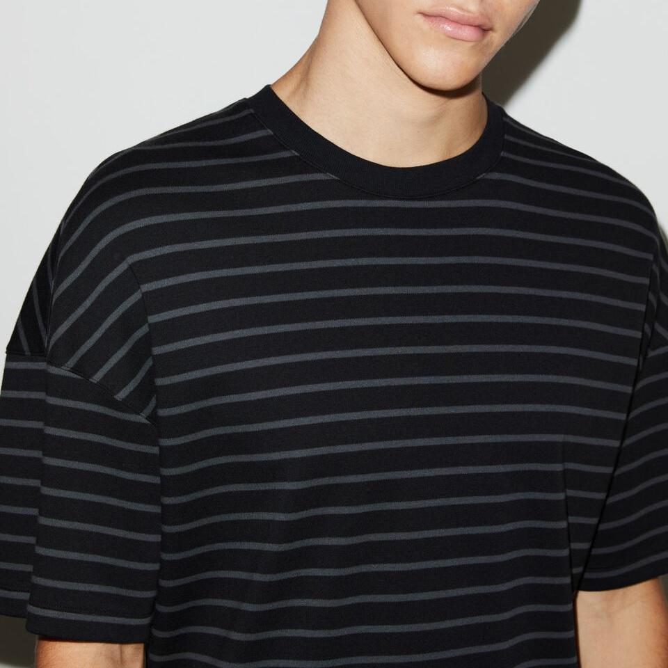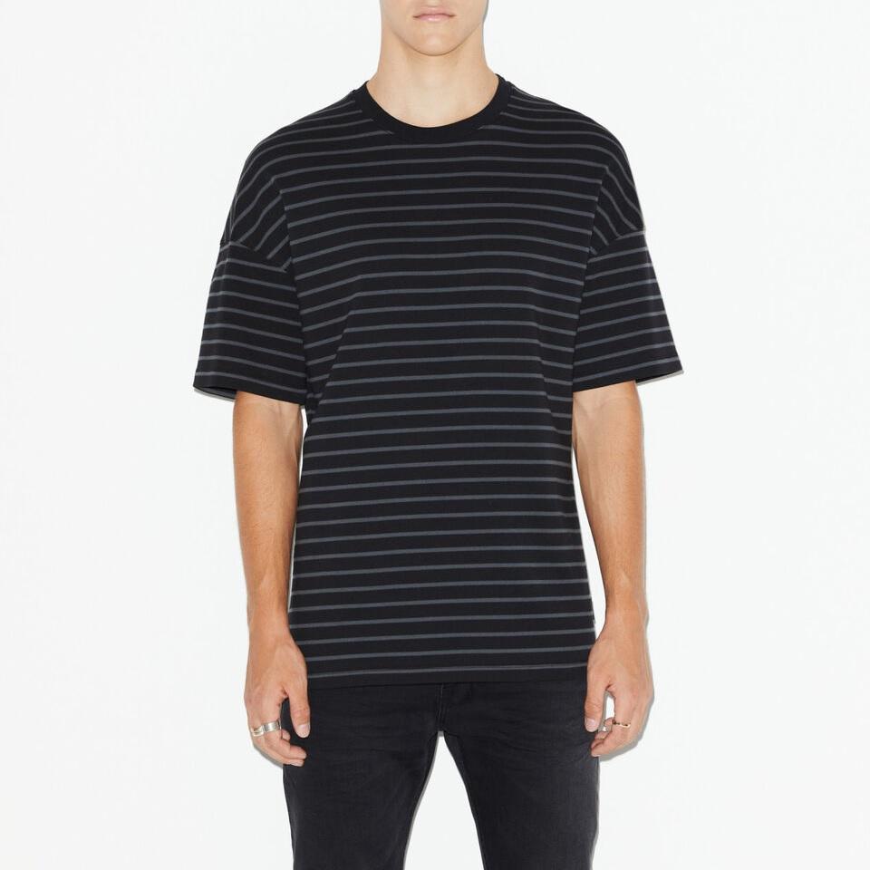 เสื้อยืดลายทางผู้ชายพิมพ์ลายตามสั่ง ผ้าฝ้าย 100% ทรงหลวม ระบายอากาศได้ดี เป็นมิตรกับสิ่งแวดล้อม รุ่นขายดี ดรอปโชลเดอร์ BD