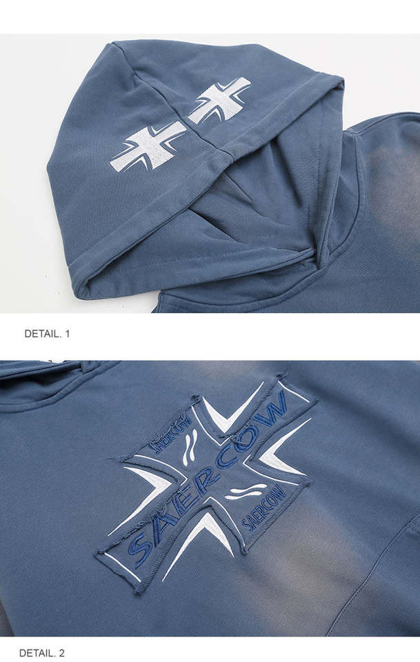 เสื้อแจ็คเก็ตทรงหลวม น้ำหนักมาก 500gsm 600gsm คุณภาพสูง ปักลายแบบกำหนดเอง ปักลายแบบดิสเทรส เสื้อฮู้ดแบบสวมหัว