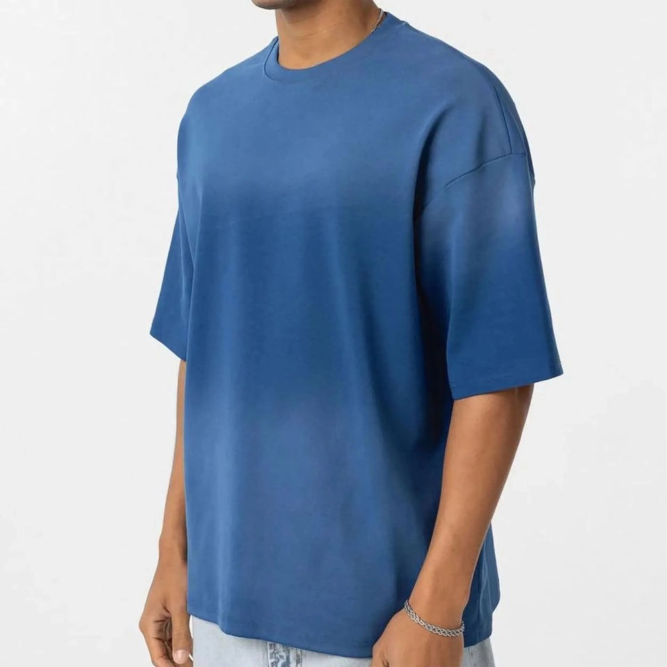 เสื้อยืดผู้ชายทรงหลวม 100% ผ้าฝ้ายเนื้อหนา ทรงปกติ ล้างสีแบบแอซิดวอช สไตล์วินเทจ รับสกรีนโลโก้