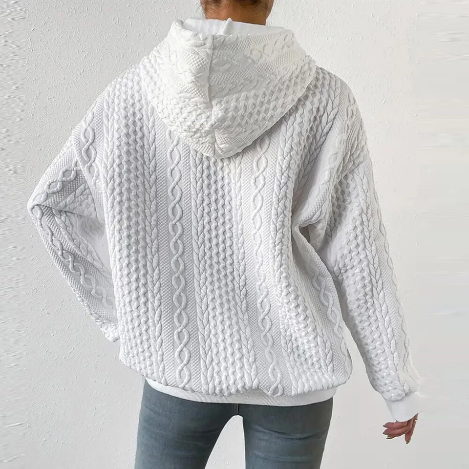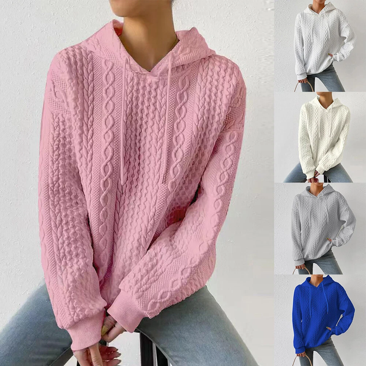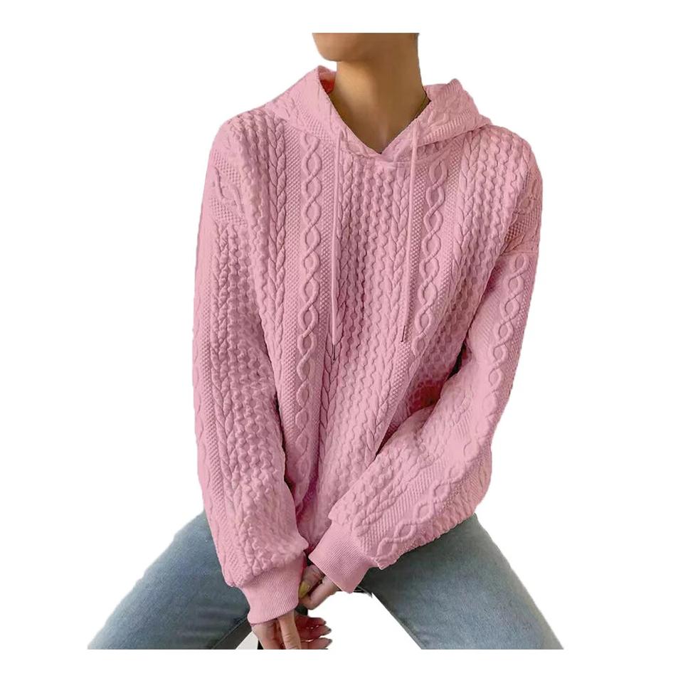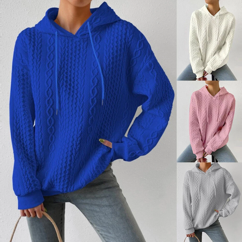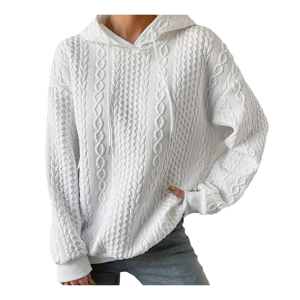 เสื้อฮู้ดดี้แขนยาวทรงหลวมแบบดรอปโชลเดอร์สำหรับผู้หญิงไซส์ใหญ่ ความยาวเหนือเข่า ทรงปกติ