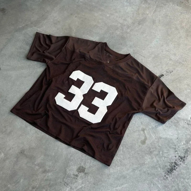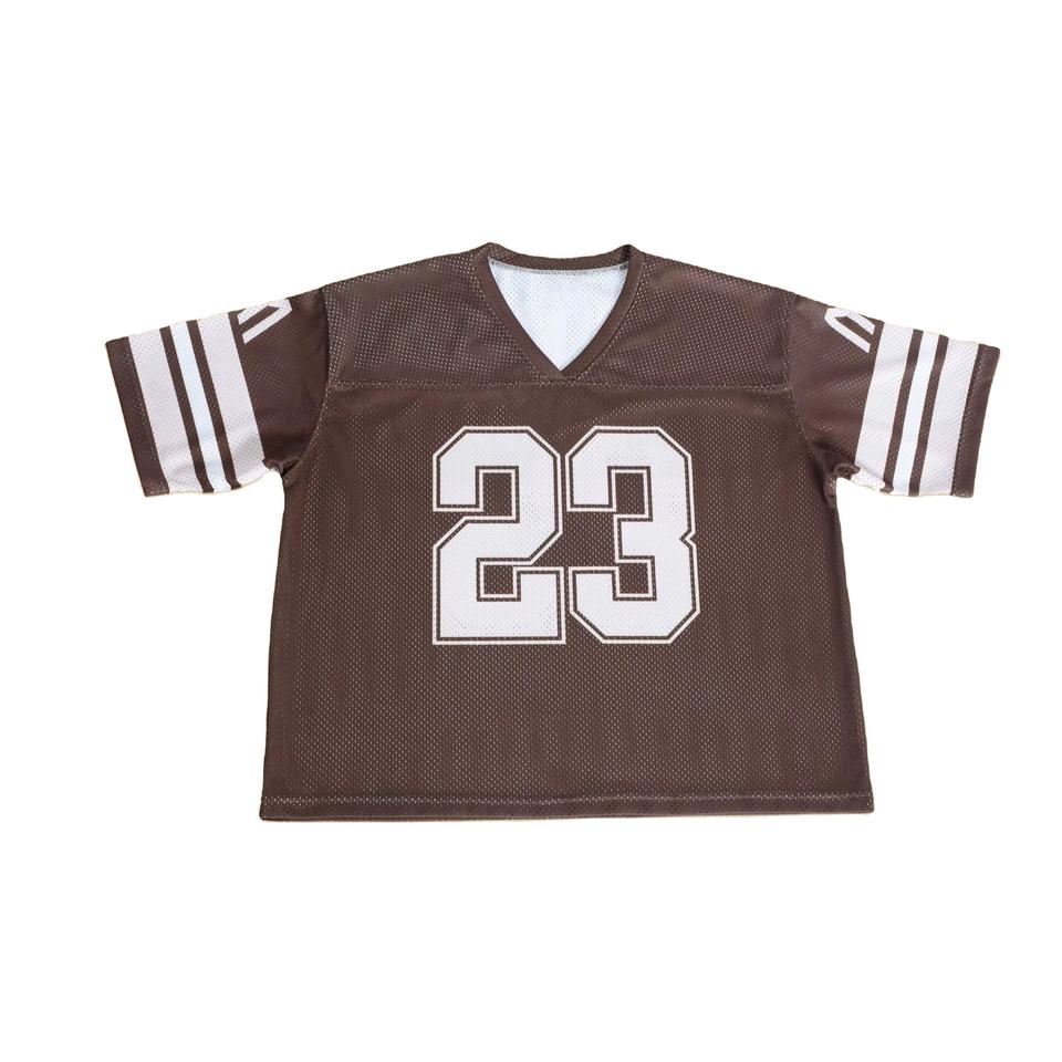 เสื้อฮอกกี้น้ำแข็ง/อเมริกันฟุตบอล แขนเสื้อแบบดรอปโชลเดอร์ ลายกราฟิกฟุตบอลสไตล์เรโทร วินเทจ พิมพ์ลายด้วยความร้อน ผ้าตาข่ายโพลีเอสเตอร์สั่งทำพิเศษ แบบสั้น