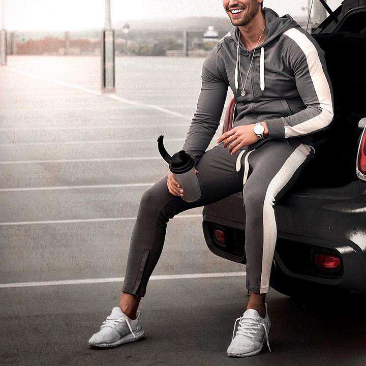 ชุดวอร์มสำหรับวิ่งของผู้ชายชุดวอร์ม2ชิ้นกระเป๋าสะท้อนแสงโพลีเอสเตอร์สินค้าตราตามสั่ง