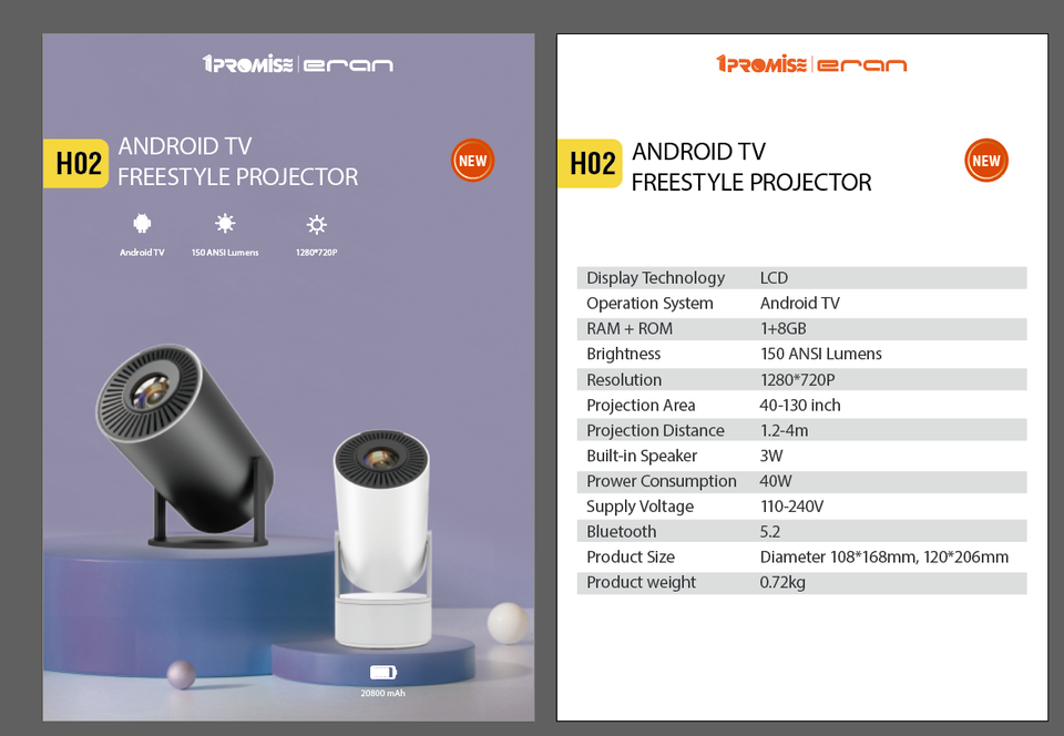 พื้นที่ฉายภาพ:40-130นิ้ว