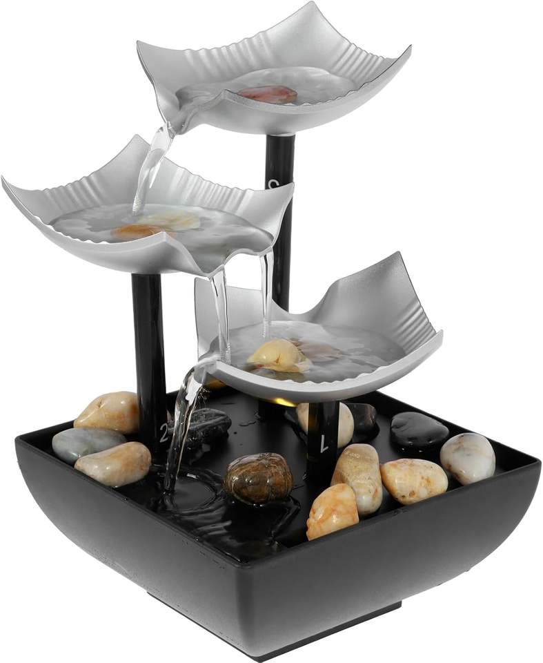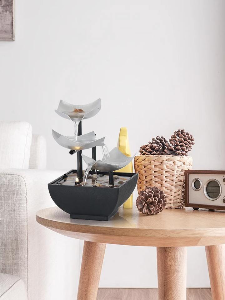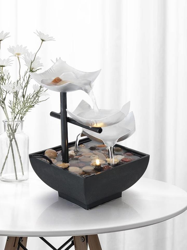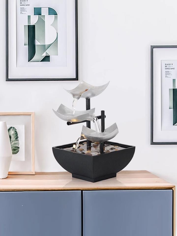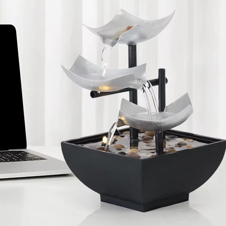 น้ำพุตั้งโต๊ะ 3 ชั้น รูปใบบัว สไตล์เซน สำหรับตกแต่งห้องและสวน ช่วยให้ผ่อนคลาย