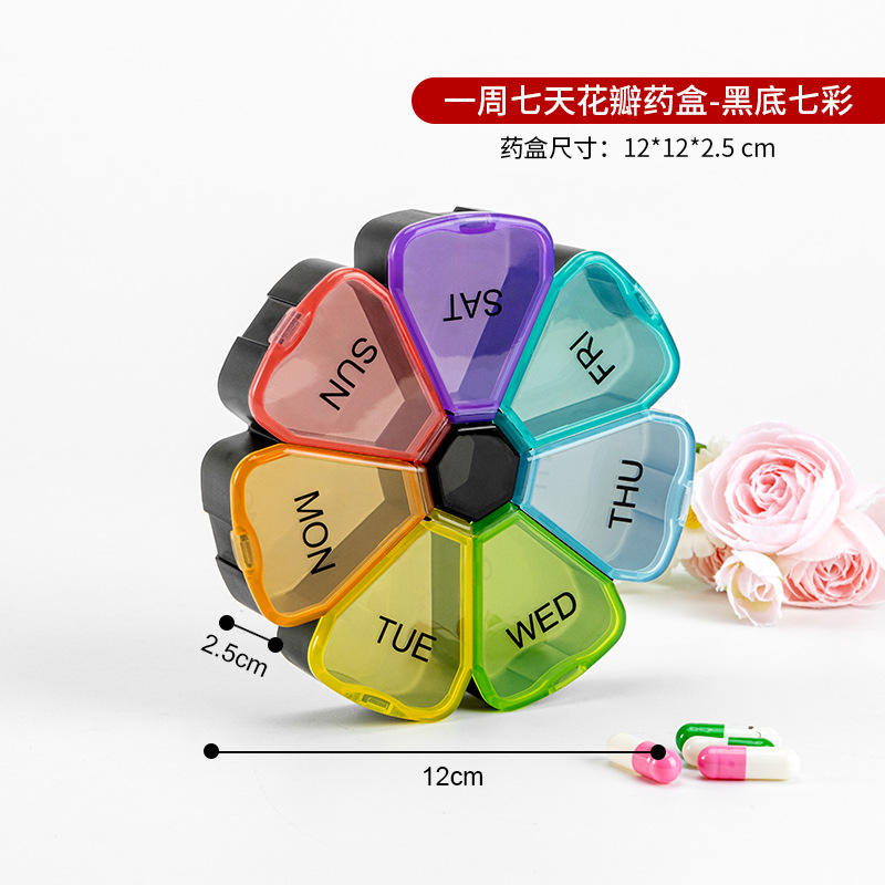 Dropshipping กล่องยาในบ้านแบบพกพา7ช่องกล่องใส่ยาพลาสติกพร้อมฝาปิดกล่องยารายสัปดาห์