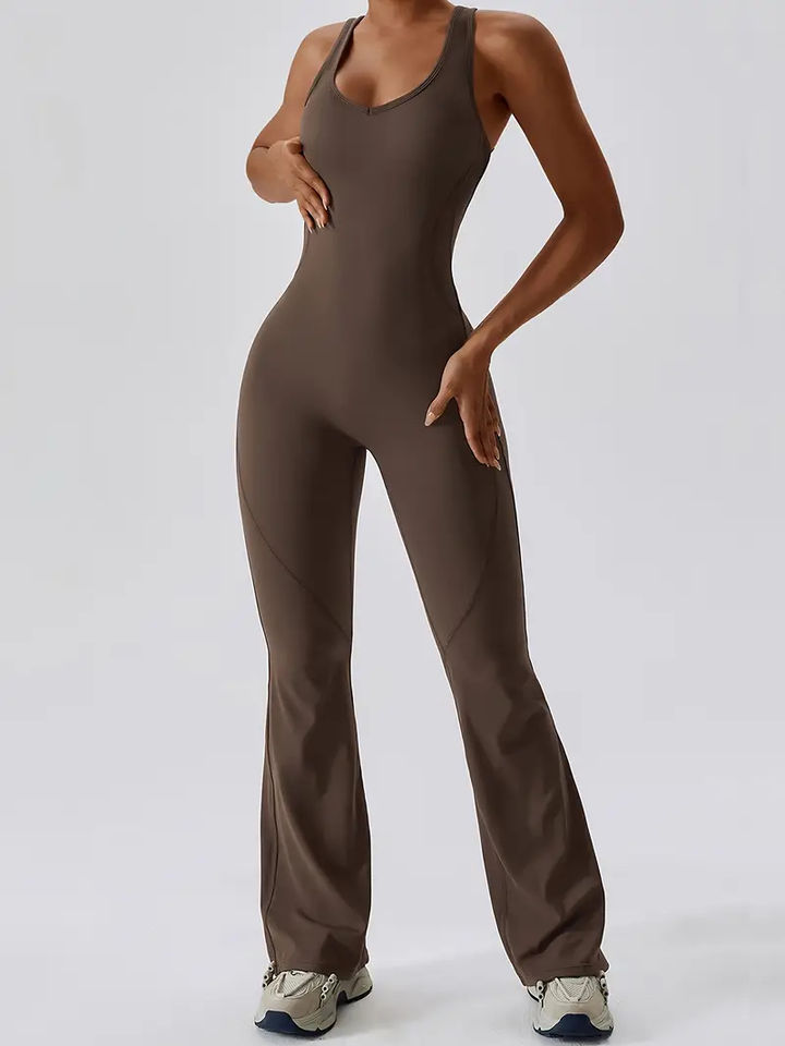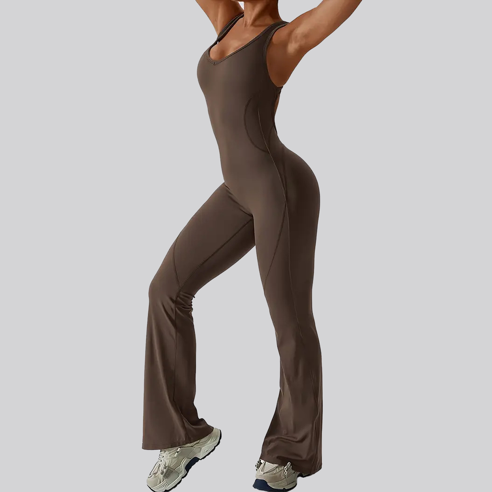 บอดี้สูทโยคะสำหรับผู้หญิงบอดี้สูทสำหรับเล่นโยคะแบบเปิดหลังมีเปลวไฟใส่สบายยืดหยุ่น