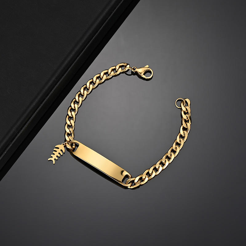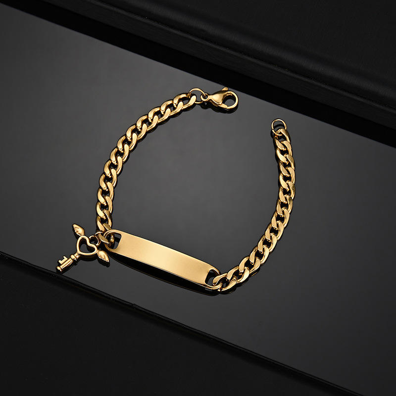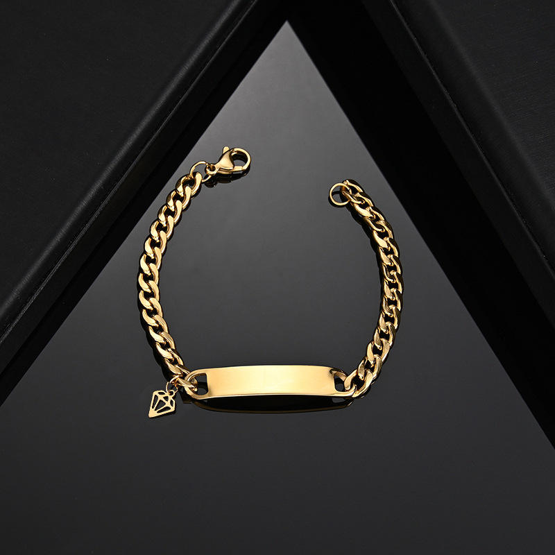 สร้อยข้อมือสแตนเลสชุบทอง18K สำหรับเด็กทุกเพศสร้อยข้อมือสไตล์คิวบาทันสมัย
