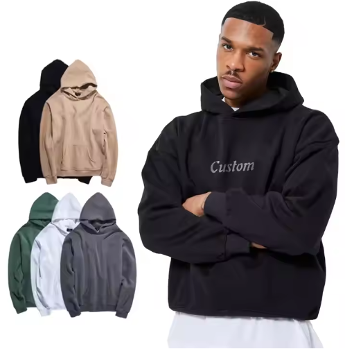เสื้อฮู้ดดี้แบบดรอปชิปปิ้ง ออกแบบเองได้ ไม่มีลาย แบบไหล่ตก ทรงครอป สำหรับผู้ชาย