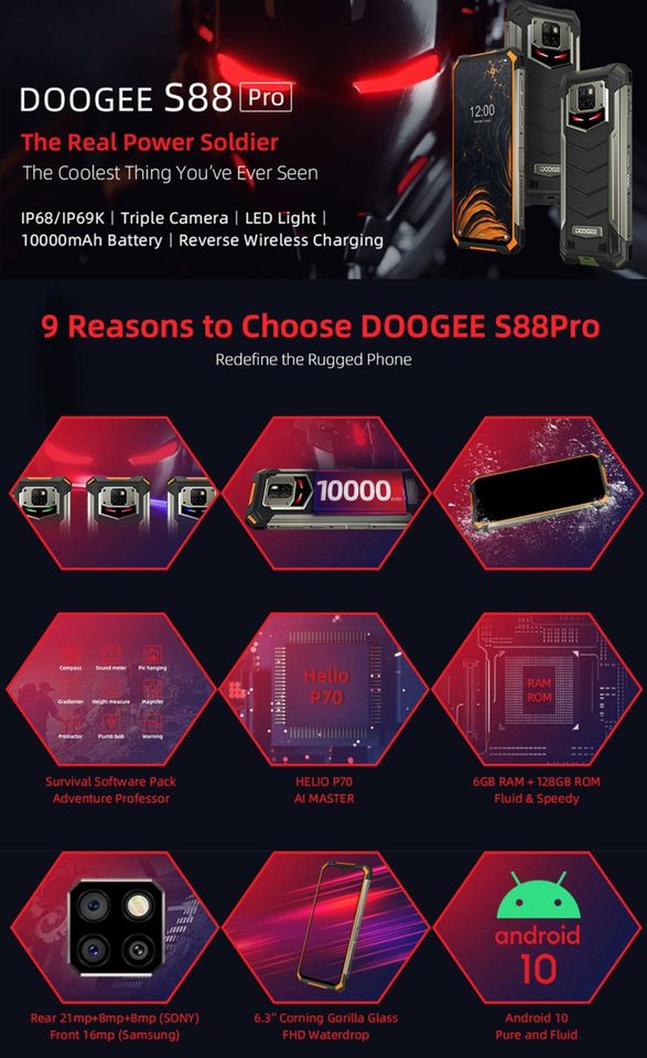 ชื่อผลิตภัณฑ์:โทรศัพท์ S88ทนทาน Doogee Pro