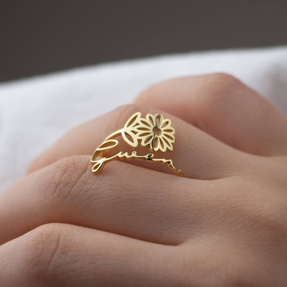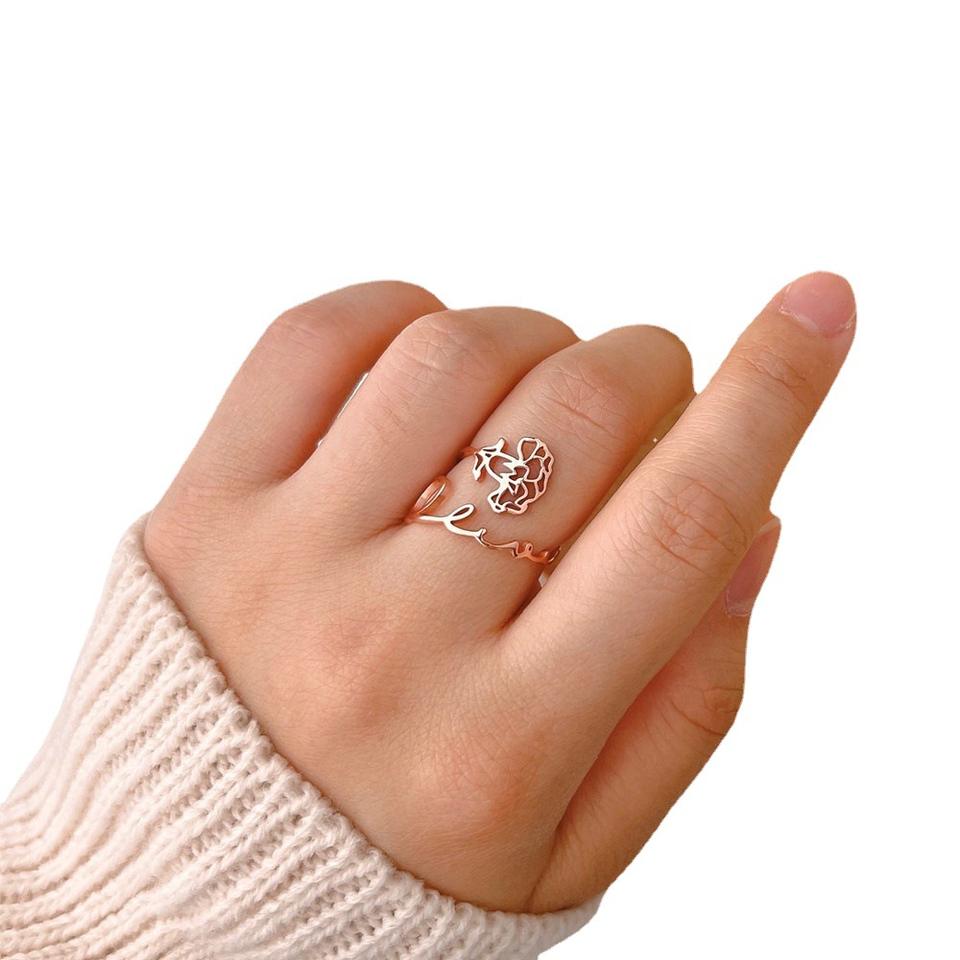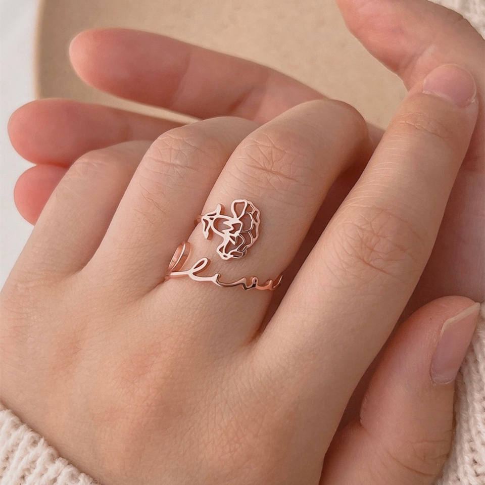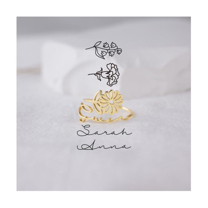 แหวนรูปดอกไม้สำหรับวันเกิดของขวัญสั่งทำแหวนชื่อตัวอักษรภาษาอังกฤษ
