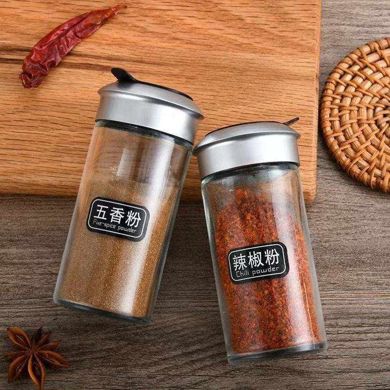 ขวดเครื่องเทศแก้วพร้อมฝาพลาสติกเครื่องปั่นหลายรูแบบหมุนได้ขวดพริกไทยเกลืออุปกรณ์ครัวขายส่งมีในสต็อก